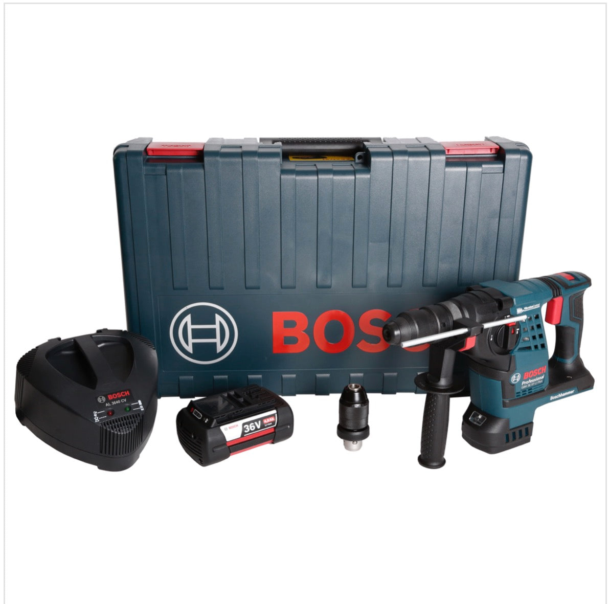 Bosch GBH 36 VF-LI Plus Akku Bohrhammer 36V SDS Plus im Handwerkerkoffer mit Wechselbohrfutter, 1x GBA 4,0 Ah Akku und Ladegerät