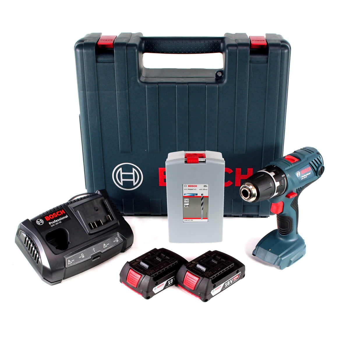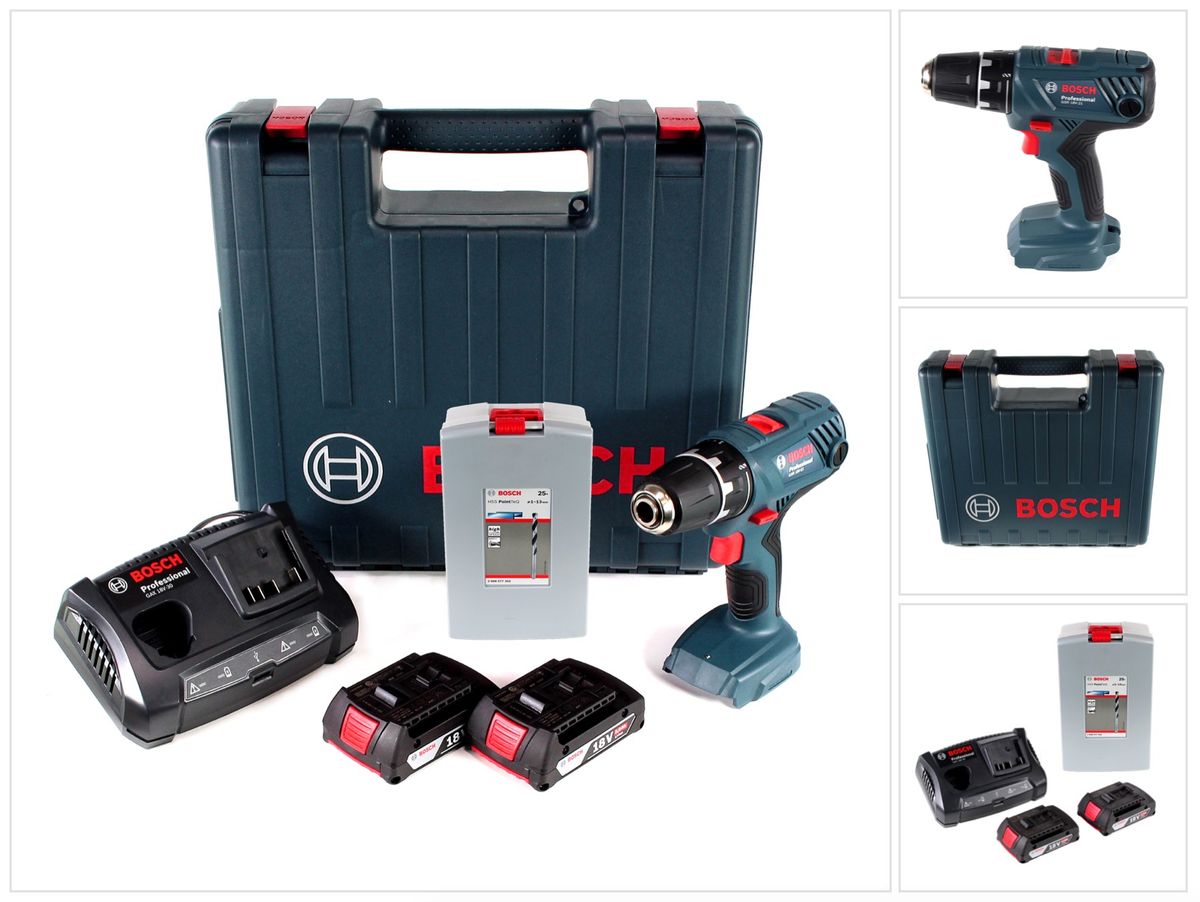 Bosch Professional GSR 18V-21 Akku Bohrschrauber 18V 55Nm + 2x Akku 2,0Ah + Ladegerät + Spiralbohrer Set + Koffer