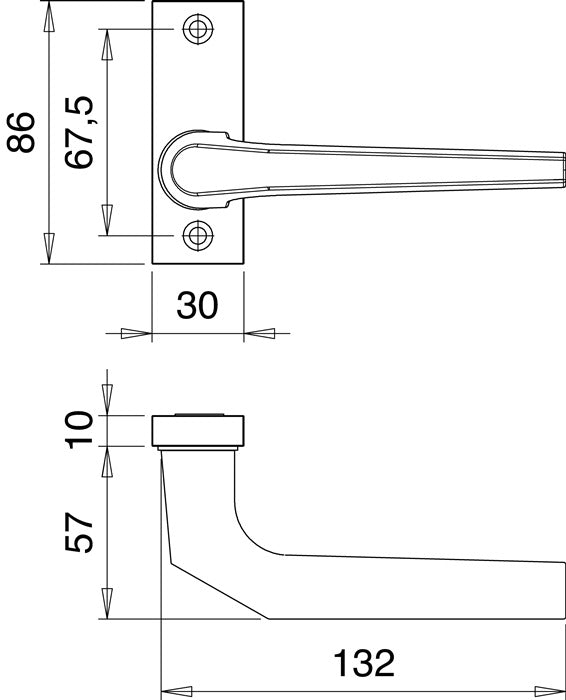 EDI Profiltürdrückerlochteil 1390/0800 ( 3000200010 ) Aluminium F1 gekröpft
