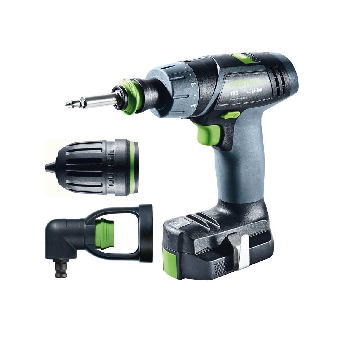 Festool TXS Li 2,6 Set Akku Bohrschrauber 10,8 V 16 Nm ( 576102 ) + 2x 2,6 Ah Akku + Ladegerät + Winkelvorsatz + Systainer - Nachfolger von 564510