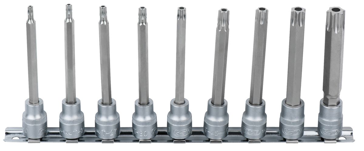 KS TOOLS 3/8" Bit-Stecknuss-Satz, lang, 9-tlg, TB20-TB60 mit Stirnlochbohrung ( 911.3980 )