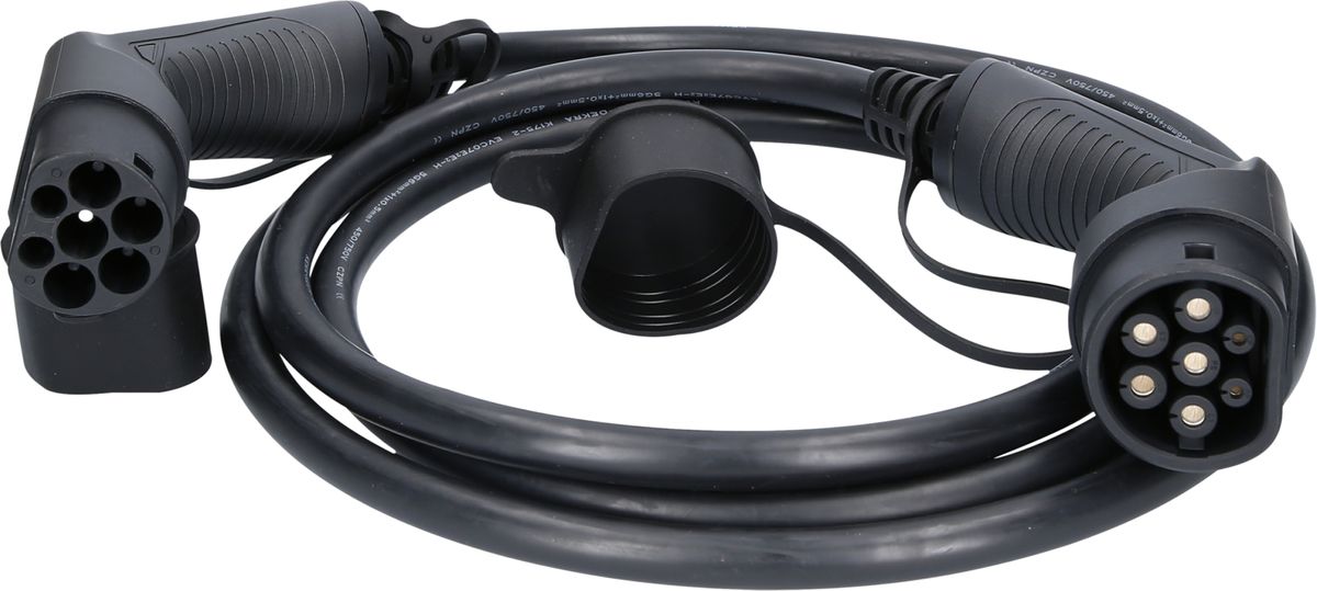 Mit diesem Mode 3 Qualitätskabel können Sie Ihr Elektro- oder Hybridfahrzeug sehr schnell, sicher und zuverlässig aufladen. Der integrierte Überhitzungsschutz unterbricht die Stromzufuhr im Falle von hoher Wärmeentwicklung und verhindert so Schäden an der Batterie des Fahrzeugs oder an der Ladestation. Mit einer Ladeleistung von bis zu 22 kW und einer Kabellänge von 3 Metern ist dieses Ladekabel ideal geeignet für das Laden Zuhause oder an einer öffentlichen Ladestation. Durch die ergonomisch geformten Stecker, und das hochwertige und langlebige Kabel ist dieses Ladekabel ein zuverlässiger Partner für das Laden Ihres Elektro- oder Hybridfahrzeugs. Sie können dieses Kabel auch zum Aufladen an Ladestationen bis maximal 22 kW verwenden, da die Mode 3-Ladeeinheiten so konzipiert sind, dass sichergestellt ist, dass Ihr Fahrzeug über das Kabel die richtige elektrische Leistung bezieht. Der Ladestecker kann sowohl an der Station als auch am Fahrzeug verriegelt werden, dazu schließen Sie Ihr Auto einfach ab. Die Stecker sind dann fest mit Ihrem Auto und der Station verbunden und Sie können sich während des Ladevorgangs entspannt von Ihrem Elektroauto entfernen. Damit Ihr Ladekabel sicher verstaut ist, während Sie nicht laden, ist eine praktische Kabel-Tasche im Lieferumfang Ihres neuen Ladekabels enthalten.