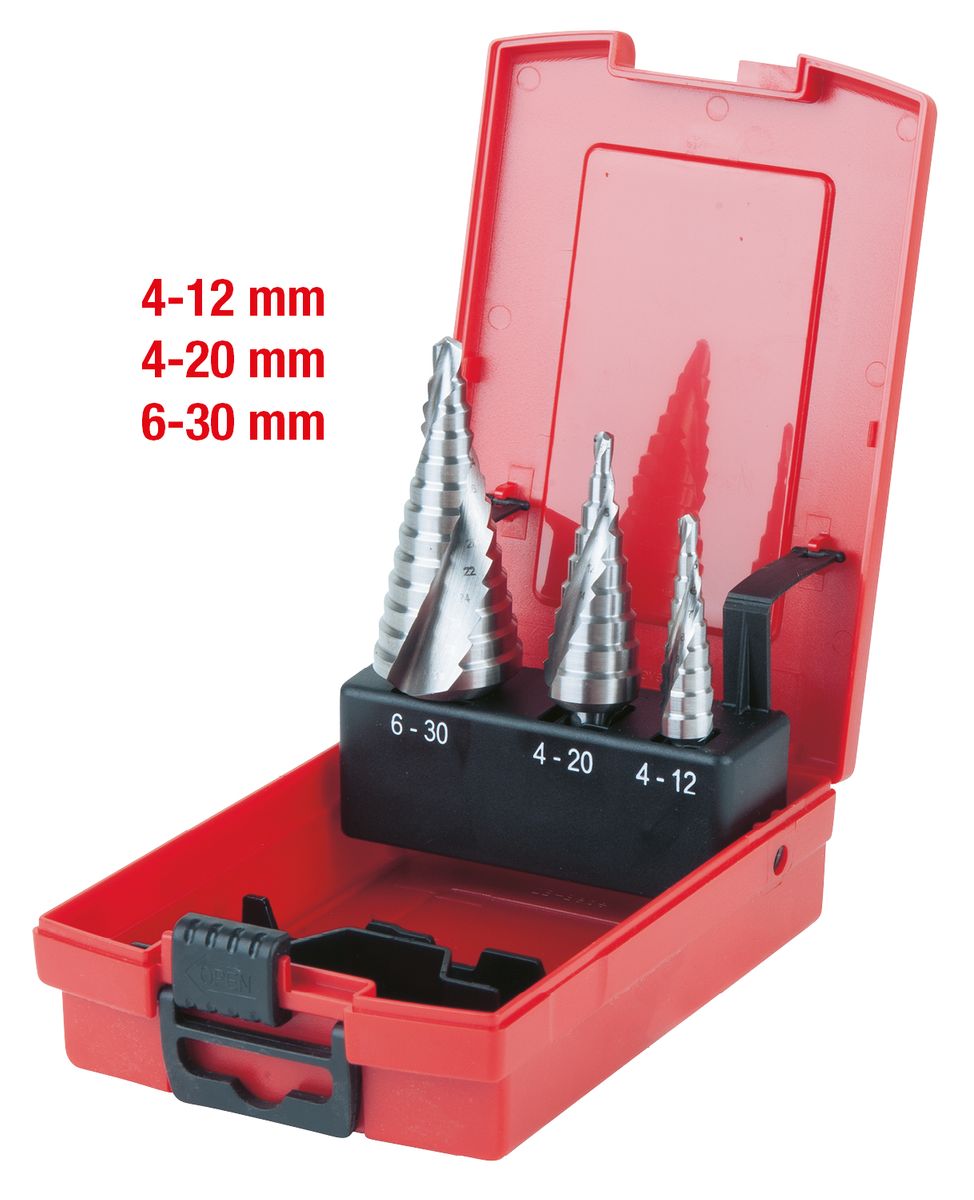 HSS Co 5 Stufenbohrer-Satz, Kunststoffkassette 3-tlg · HSS Co 5 Stufenbohrer-Satz in Kunststoffkassette