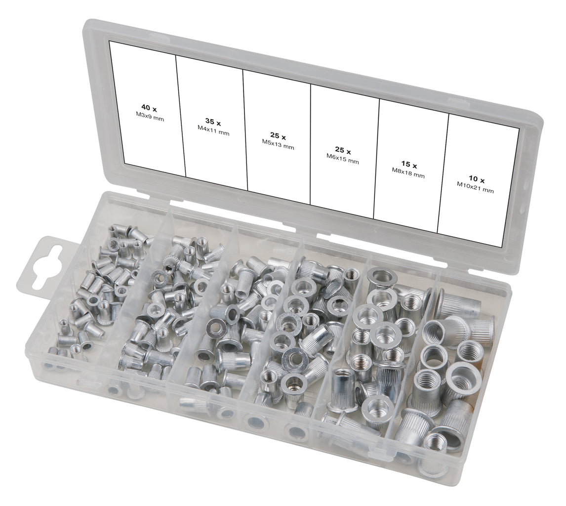 KS TOOLS Sortiment Gewindenieten, Aluminium, M3x9mm-M10x21mm, 150-tlg ( 970.0620 )