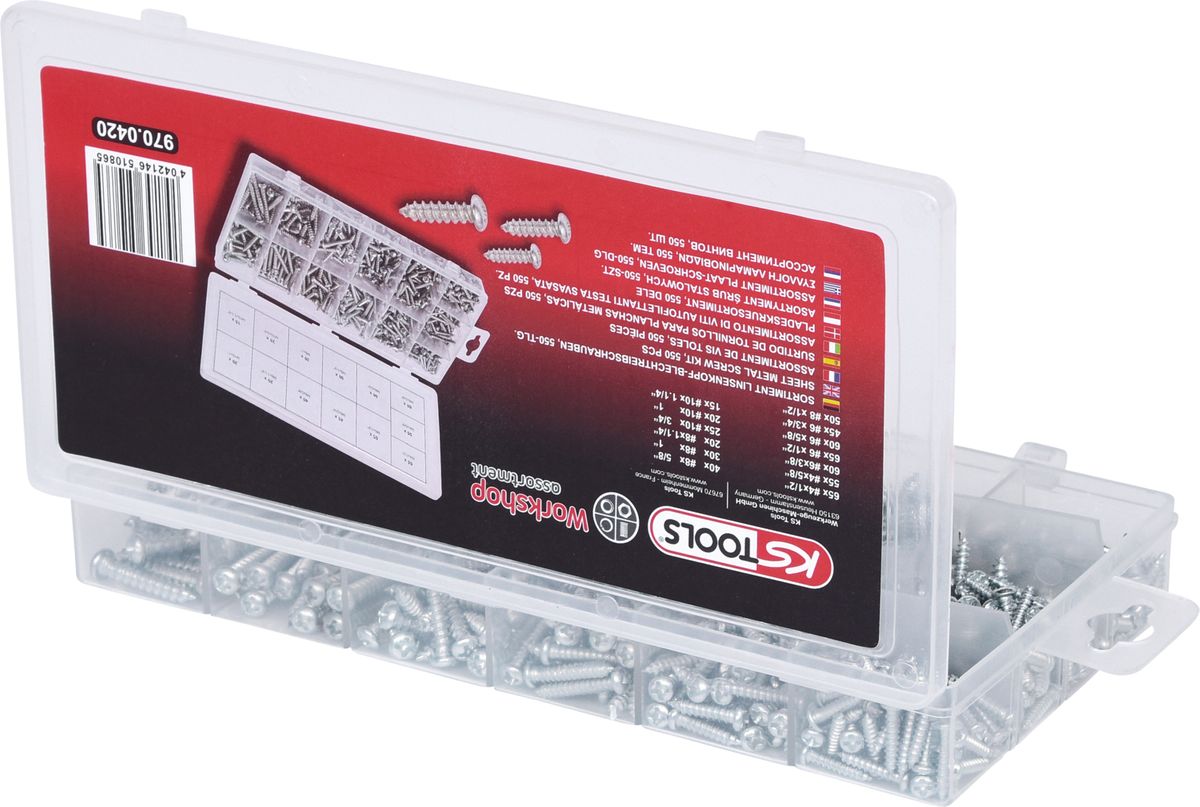 KS TOOLS Sortiment Linsenkopf-Blechtreibschrauben, 550-tlg ( 970.0420 )