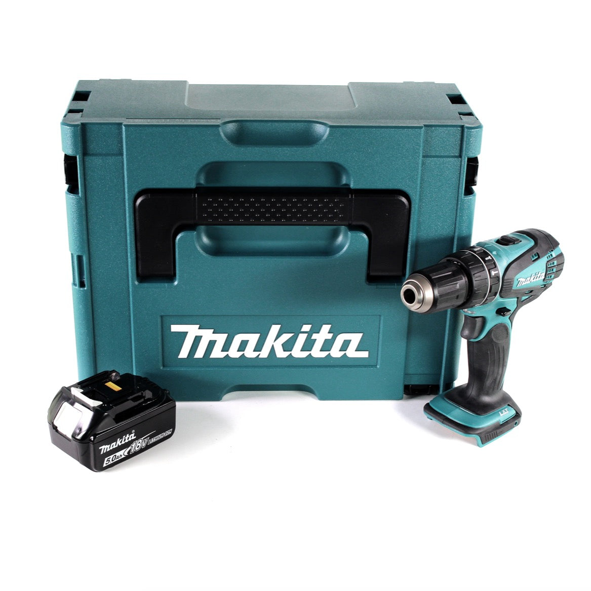 Makita DHP 456 T1J Akku Schlagbohrschrauber 18 V 50 Nm + Makpac + 1x 5,0Ah Akku - ohne Ladegerät
