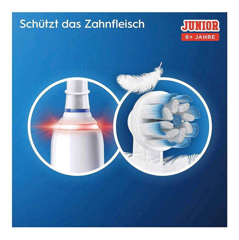 Die Oral-B Junior Minnie Mouse elektrische Zahnbürste für Kinder ab 6 Jahren sorgt mit den weichen Borsten des Sensitive Clean Bürstenkopfes für eine sanfte und effektive Plaque-Entfernung. Die visuelle 360°-Andruckkontrolle leuchtet bei zu viel Druck rot auf und reduziert automatisch die Putzgeschwindigkeit, um das weiche Zahnfleisch von Kindern zu schützen. Die Zahnbürste bietet eine Auswahl zwischen 2 verschiedenen Putzprogrammen für individuelle Mundpflegebedürfnisse: Tägliche Reinigung und Sensitiv. Der integrierte Timer hilft die von Zahnärzten empfohlene Putzzeit von 2 Minuten einzuhalten. Damit das Zähneputzen noch mehr Spaß macht, kann die Zahnbürste mit der kostenlosen Disney Magic Timer App von Oral-B verwendet werden. Die Zahnbürste hilft Kindern, eigenständig ihre Zähne zu putzen und gesunde Putzgewohnheiten zu entwickeln.
