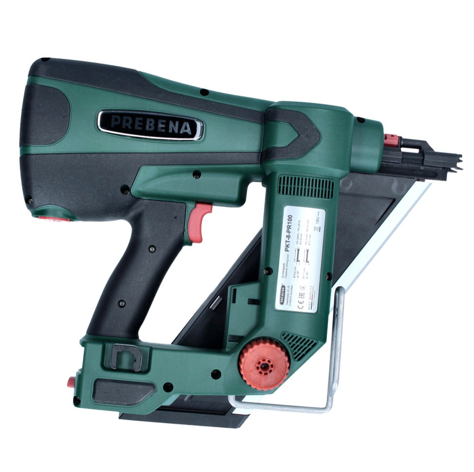 Mit dem Prebena PKT 8 PR100 Akku Hybrid Nagler Set sind komfortable und schnelle Arbeiten möglich. Dank der schnellen Schussfolge von 1,5 Schuss die Sekunde sowie der leichten Bauweise ist der Nagler fast überall anwendbar. Die maximale Arbeitsfreiheit und das nicht notwendige Zubehör wie eine Gaskartusche, ein Netzkabel oder ein extra Schlauch machen den Akku Nagler zu einer echten Bereicherung des Anwenders. Dank der 18 V ist der Akku Nagler kraftvoll und ausdauernd zugleich. Des weiteren sind sämtliche Nagellängen problemlos kompatibel. Auch Nägel mit Ringausführung bis 100 mm stellen kein Problem dar. Der Akku Hybrid Nagler ist sowohl für den Innen als auch für den Außenbereich geeignet. Er ist Wetter- und temperaturunabhängig und schützt dank des Akkuantriebs sogar die Umwelt. Der PKT-8-PR100 ist ausschließlich für PR Nägel konzipiert. Prebena verbindet eine lange Tradition zu verschiedenen Werkzeugen, darüber hinaus ist Prebena Mitglied im CAS Konzern und besitzt somit eine breite Pallette an kompatiblen Geräten und Akkus anderer Hersteller.