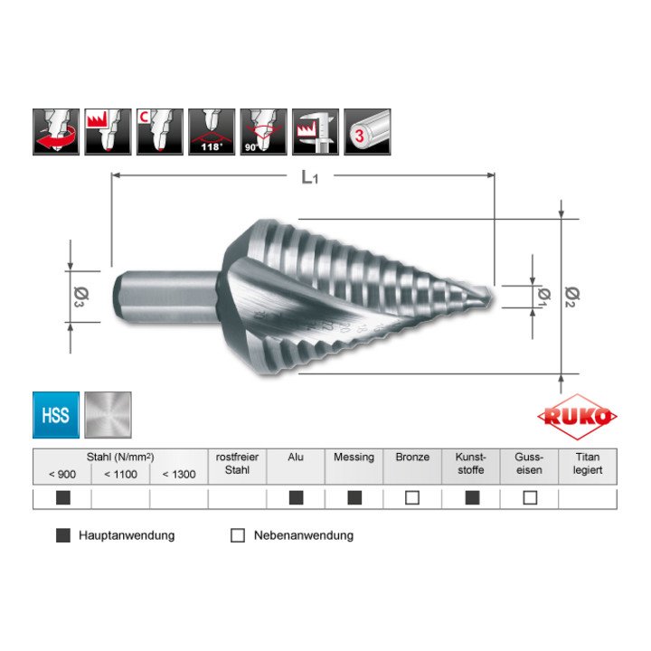 RUKO Stufenbohrer Bohrbereich 4 - 30 mm ( 4000601754 )