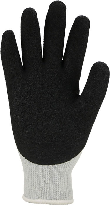 Terry-Rundstrick mit Naturlatexbeschichtung · nach EN 388 · EN 511 · Kat. II · Material: Polyester / Baumwolle mit Naturlatex · Schnittschutzstufe 2 · schrumpfgeraute Profilierung, schwarz · rundgestrickt, Schlingen, grau · erstklassiger Kälte- und Nässeschutzhandschuh · massiver, mechanischer Schutz · Anwendung: gute Flexibilät in Kältebereichen, massiver mechanischer Schutz