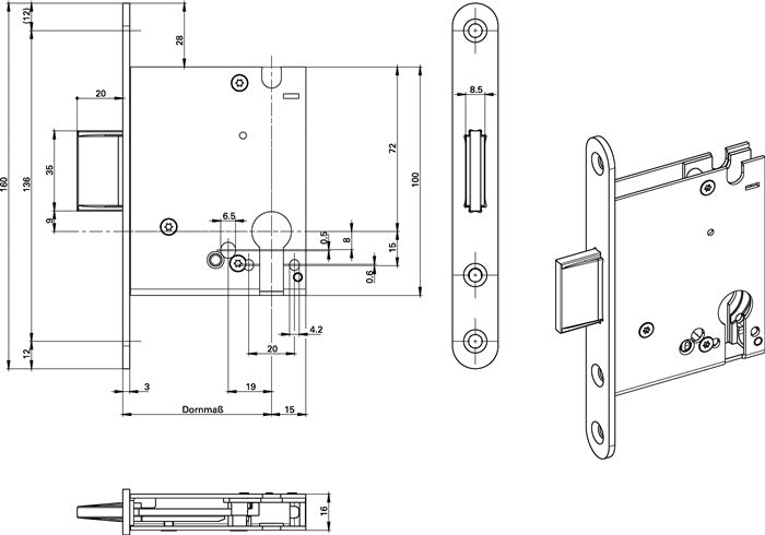 BKS Einsteckriegelschloss 1308 PZ20/55 mm ( 3000250786 )
