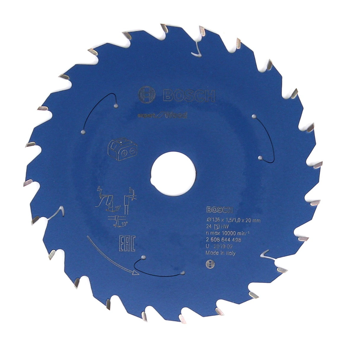 Bosch Kreissägeblatt Expert for Wood 136 x 1,0 x 20 mm 24 Zähne für Holz ( 2608644498 )