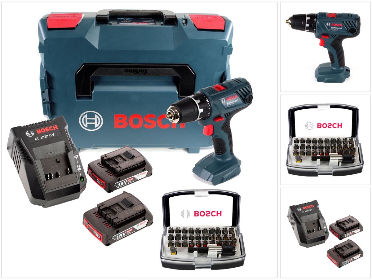 Bosch Professional GSR 18V-21 Akku Bohrschrauber 18V 55Nm + 2x Akku 2,0Ah + Ladegerät + Bit-Set + L-Boxx