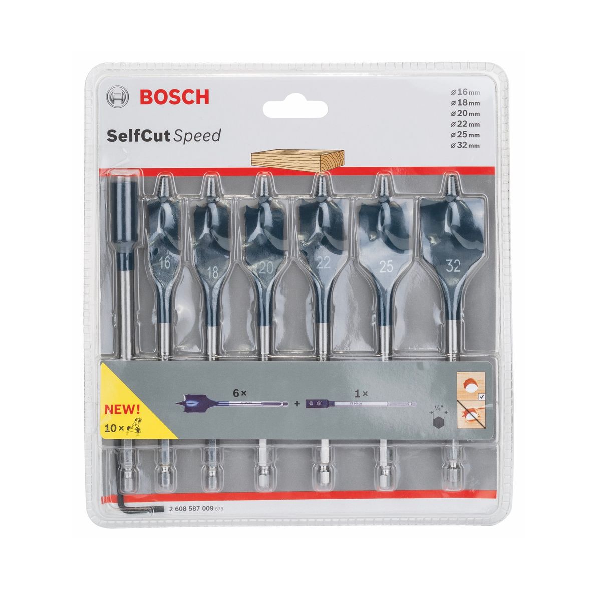 Bosch Self Cut Speed Flachfräß Bohrer Set 7tlg. 16/18/20/22/25/32mm + Verlängerung 1/4" ( 2608587009 )