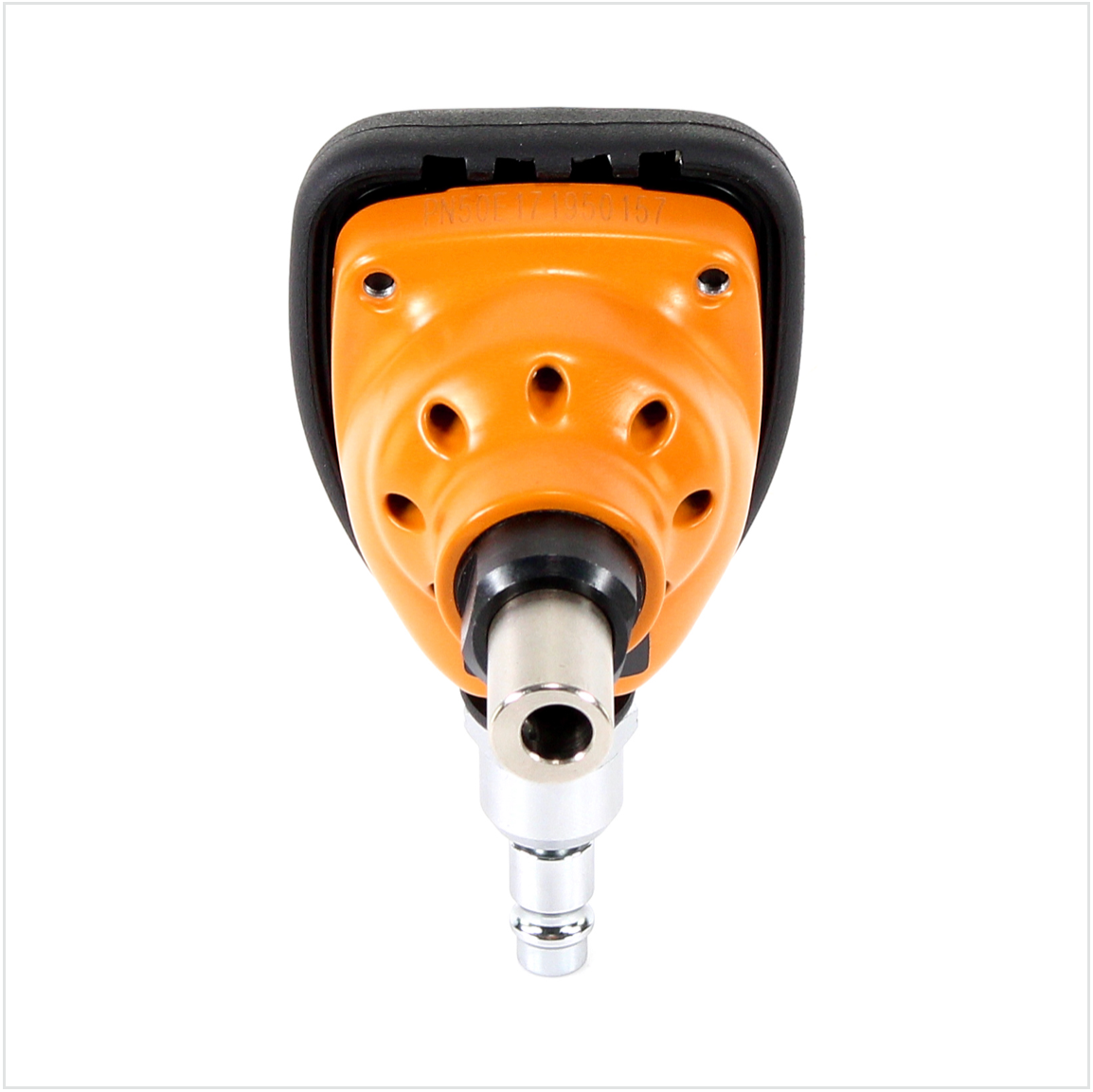 Der PN50-E mit Druckluft-Antrieb ist extrem leicht und kompakt, sodass auch an schwierigsten Stellen sicher und genau gearbeitet werden kann. Er eignet sich speziell für das schnelle und leichte Verarbeiten loser Nägel. Das Gerät ist mit einer magnetischen Platzierungs-Spitze ausgestattet, dadurch ist maximale Beweglichkeit auch bei einhändigem Arbeiten möglich. Mit Kugelgelenk am Druckluftschlauchanschluß für flexibles Arbeiten.