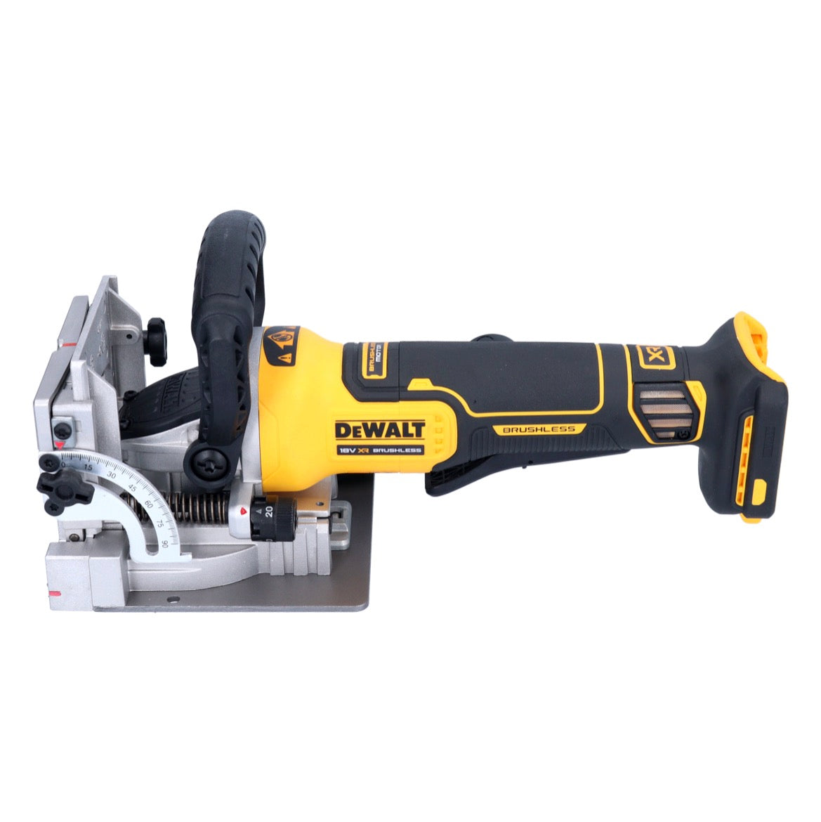 Die DeWalt DCW 682 Akku Flachdübelfräse mit 18 V überzeugt durch ihre innovative, bürstenlose Motor-Technologie. Dadurch erzielt sie eine höhere Leistung, ist kompakter und besitzt eine längere Lebensdauer. Die präzise Zahnstangenführung ermöglicht eine exakte, vertikale Justierung und Ausrichtung des Parallelanschlages. Dadurch wird eine hohe Genauigkeit gewährleistet. Die Flachdübelfräse verfügt über einstellbare Fixrasten für Lamellendübel mit 0, 10 und 20 mm sowie eine maximale Frästiefe. Zusätzlich sorgt die Feinjustierung für höchste Genauigkeit. Der höhenverstellbare und von 0° bis 90° justierbare Gehrungsanschlag bietet weiterhin vielseitige Einsatzmöglichkeiten. Die versenkbare Anti-Rutschvorrichtung, achtfache Anrissmarkierung und der Anschlag mit Sichtfenster ermöglichen präzises Arbeiten. Dank der Spindelarretierung gestaltet sich der Fräserwechsel einfach und unkompliziert. Besonders praktisch ist der Air-Lock Adapter, der staubarmes Arbeiten ermöglicht. Somit bleibt die Arbeitsumgebung sauber und gesundheitsgefährdende Staubpartikel werden minimiert. Die DeWalt DCW 682 Akku Flachdübelfräse ist die ideale Lösung für präzise und professionelle Flachdübelfräsarbeiten.