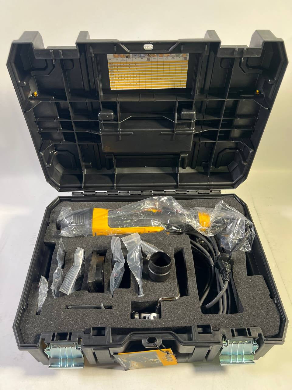 Das DeWalt DWE 315 ist ein 300 Watt starkes, oszillierendes Multifunktions Werkzeug mit einem Oszillationswinkel von 1,6°. Die Maschine überzeugt durch Ihren leistungsstarken 300-Watt-Motor und die herausragende Gehäuse-/ Griffergonomie, was ermüdungsarmes Arbeiten garantiert. Die Geschwindigkeit kann durch den feststellbaren Schalter stufenlos von 0 - 22.00 min-1 geregelt werden. Die neuartige Zubehöraufnahme erlaubt einen schnellen und werkzeuglosen Zubehörwechsel. In dem KT - Set beinhaltet der Lieferumfang zusätzlich eine Staubabsaugungsvorrichtung, einen Tiefenanschlag sowie ein 37- teiliges Zubehör-Set und wird insgesamt in einem DeWalt T-STAK II Systemkoffer ausgeliefert.