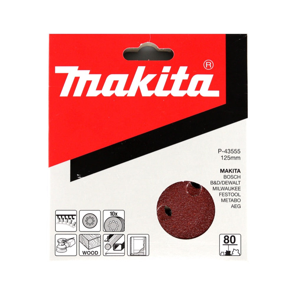 - 1x 10er Pack Makita Schleifpapier 125 mm P 80 Klett Befestigung (P-43555)