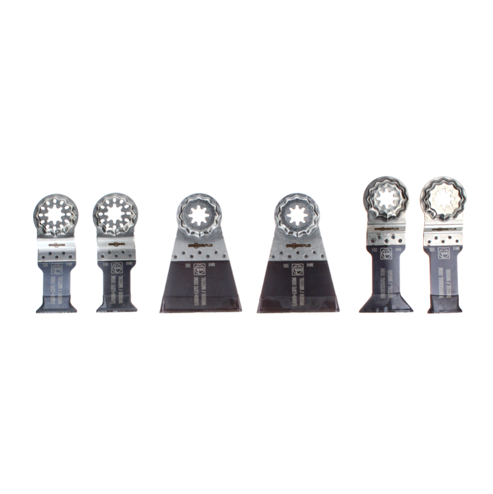 Das Best of E-Cut Set der Marke Fein enthält sechs E-Cut Tauchsägeblätter für Sägearbeiten in Holz und Metall. Durch die vier verschiedenen Blätter ist eine große Bandbreite an Funktionen abgedeckt und die verschiedenen Längen und Breiten der Sägeblätter fördern die Flexibilität der Arbeit am Rohstoff. Aufgrund des HCS - Kohlenstoffstahls ist für eine lange Haltbarkeit und hohe Belastungsresistenz gesorgt. Passend für alle FEIN Multitools sowie alle anderen gängigen Multitools mit Starlock-Plus und StarlockMax-Aufnahme.