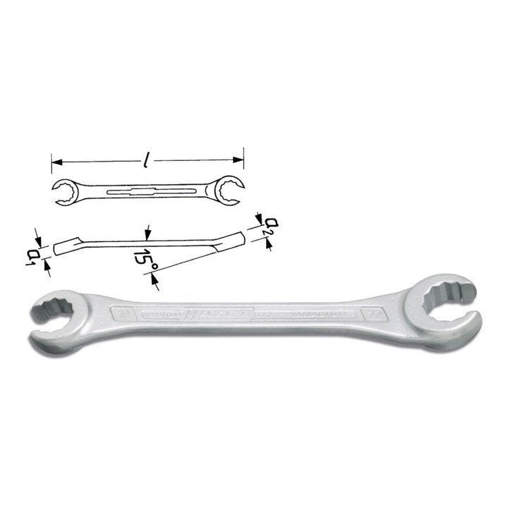 für Rohrverschraubungen, Überwurfmuttern und -schrauben · Köpfe um 15° abgewinkelt · Maulöffnung 15° geschlitzt · verchromt · 12kant DIN 3118