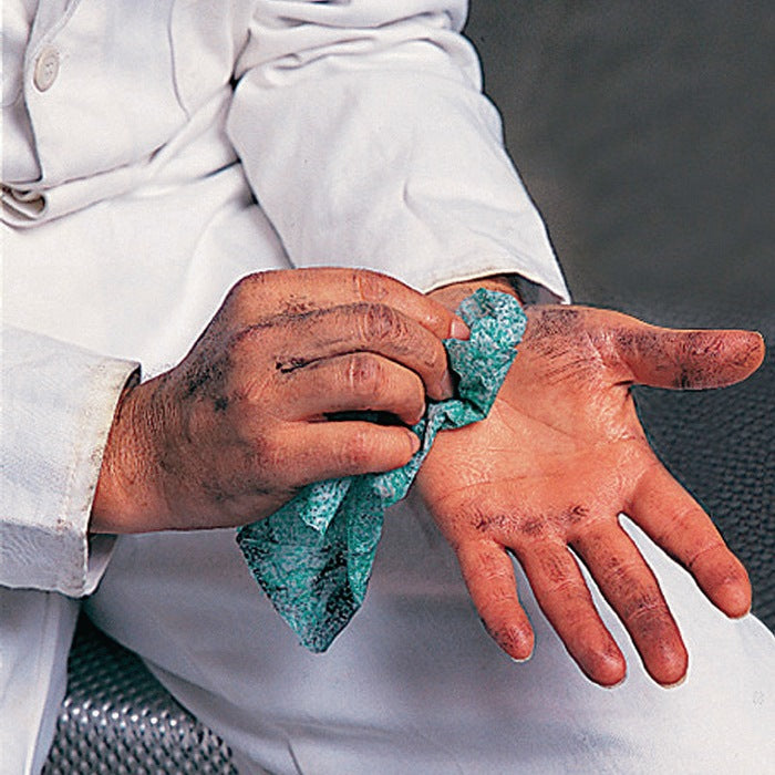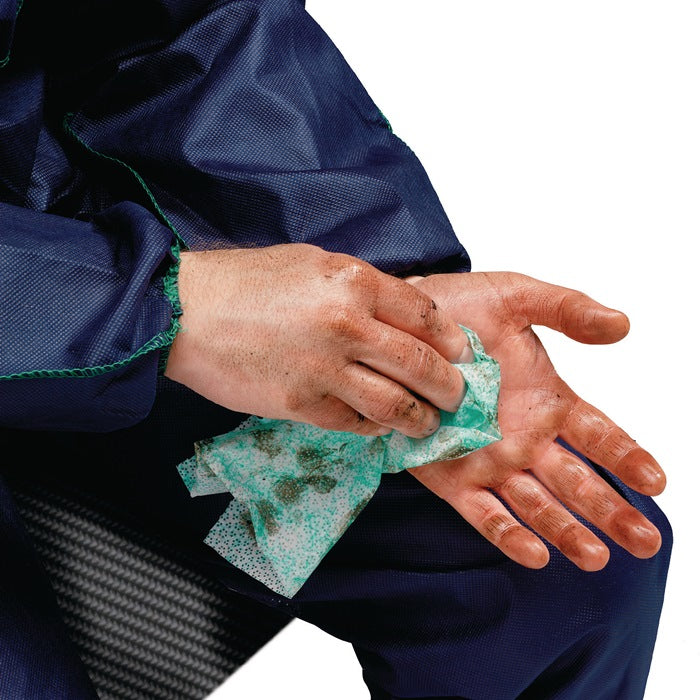 feuchte Handreinigungstücher in mobilem Spender mit Einzeltuchentnahme · intensive Handreinigung ohne Wasser und Seife · immer und überall einsetzbar · der Schmutz wird aufgebrochen, gelöst und im Tuch gebunden · mit Aloe vera als Feuchtigkeitsspender für Ihre Hände eignet sich ideal für den Einsatz in Industrie und Gewerbe, um Hände und Werkzeug effizient zu säubern