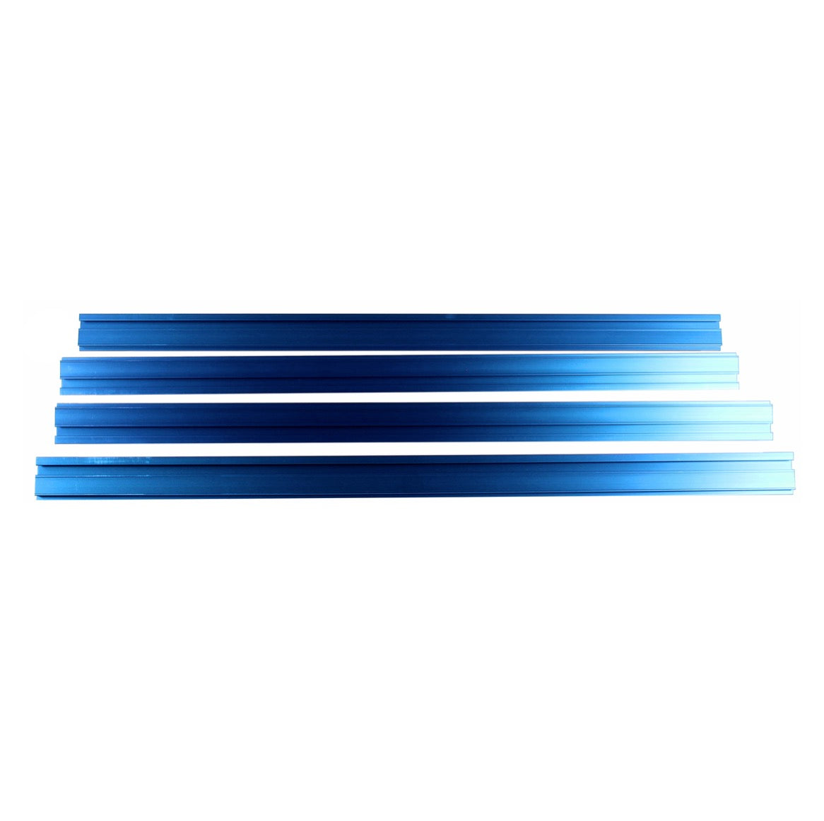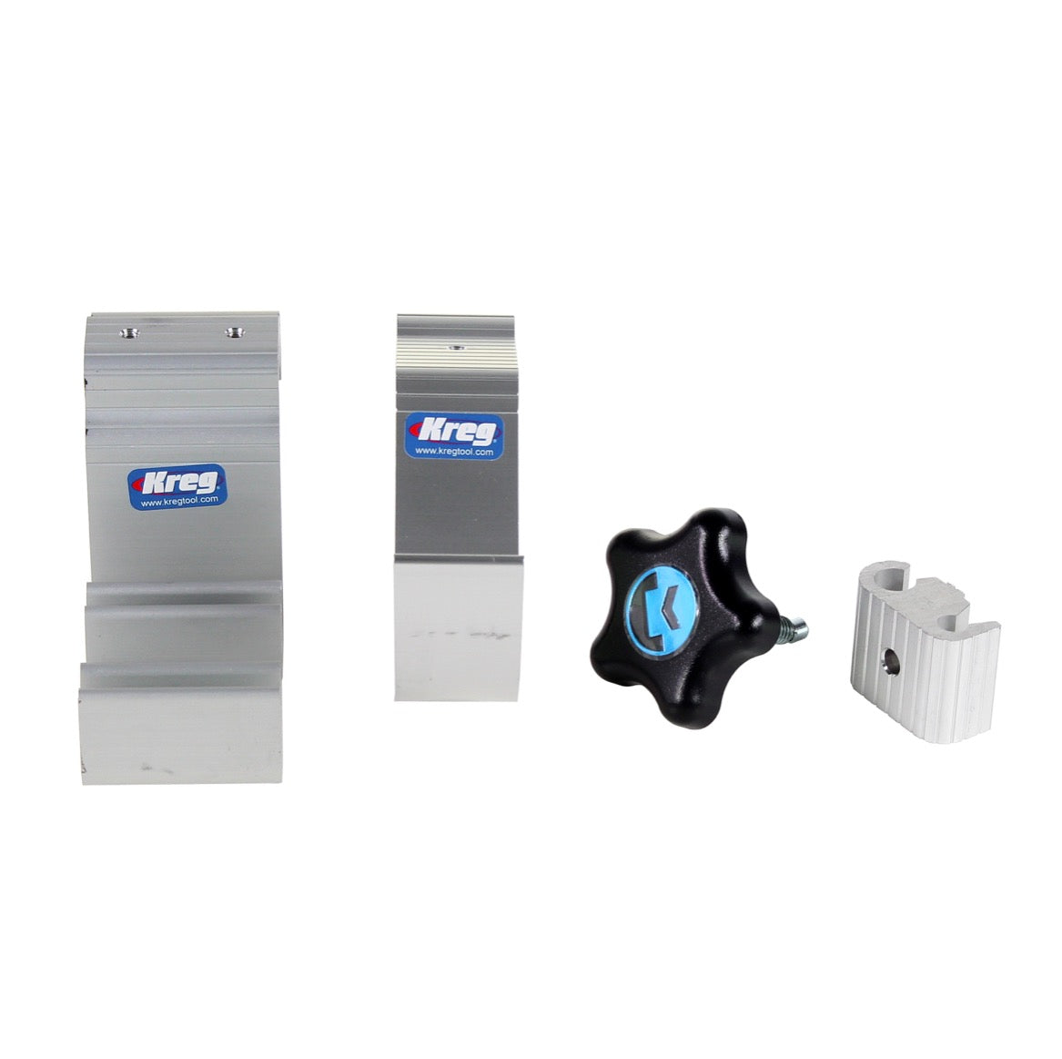 Dieses KREG Trak & Stop System verwandelt die Gehrungssäge in ein Präzisionsschneidesystem. Das Set beinhaltet vier Führungsschienenstücke, einen beweglichen Endanschlag, einen beidseitigen Endanschlag und 3,66 m selbsthaftendes Maßband (Ableserichtung: links-rechts). Die Länge der Führungsschienen aus eloxiertem Aluminium entspricht 610 mm (24 Zoll). Die verstellbaren Endanschläge können in verschiedene Arbeitspositionierungen eingestellt werden. So kann man auf zusätzlichen Arbeitsaufwand verzichten und sich das Sägen erheblich erleichtern.