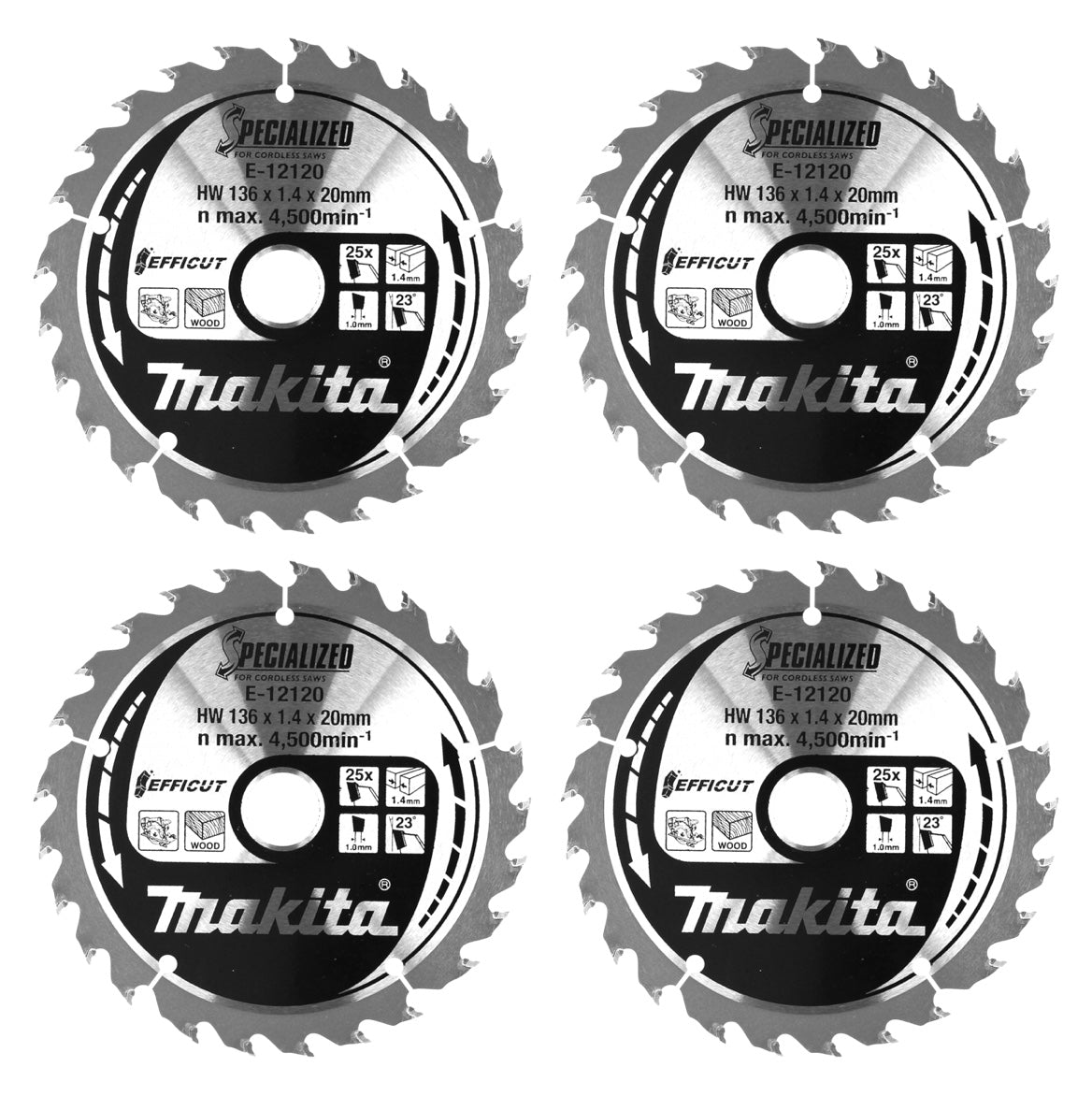Makita CCM13625E SPECIALIZED EFFICUT Sägeblatt 4 Stk. ( 4x E-12120 ) 136 x 1,4 x 20 mm 25 Zähne für Holz