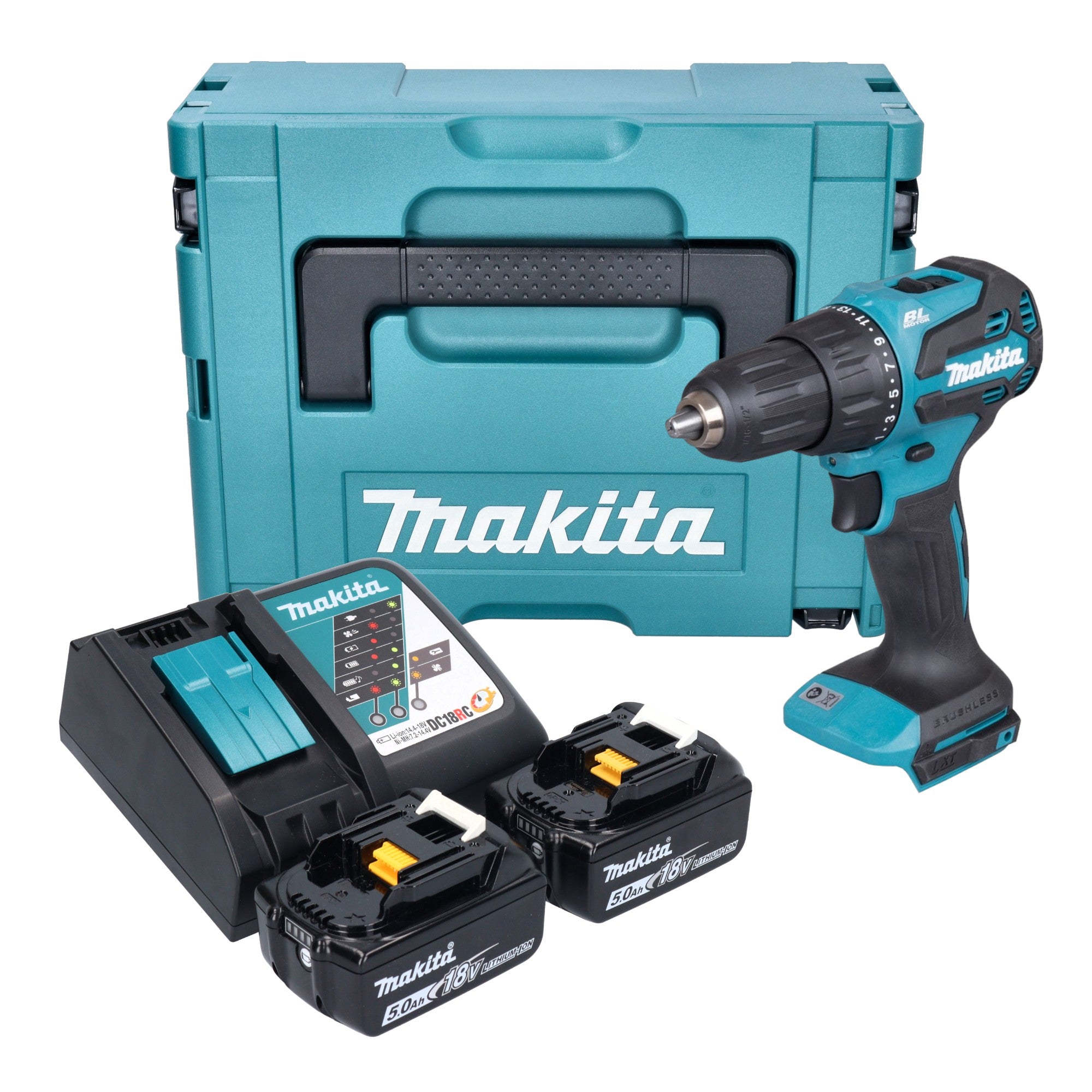 Makita DHP 490 RTJ Akku Schlagbohrschrauber 18 V 65 Nm Brushless + 2x Akku 5,0 Ah + Ladegerät + Makpac
