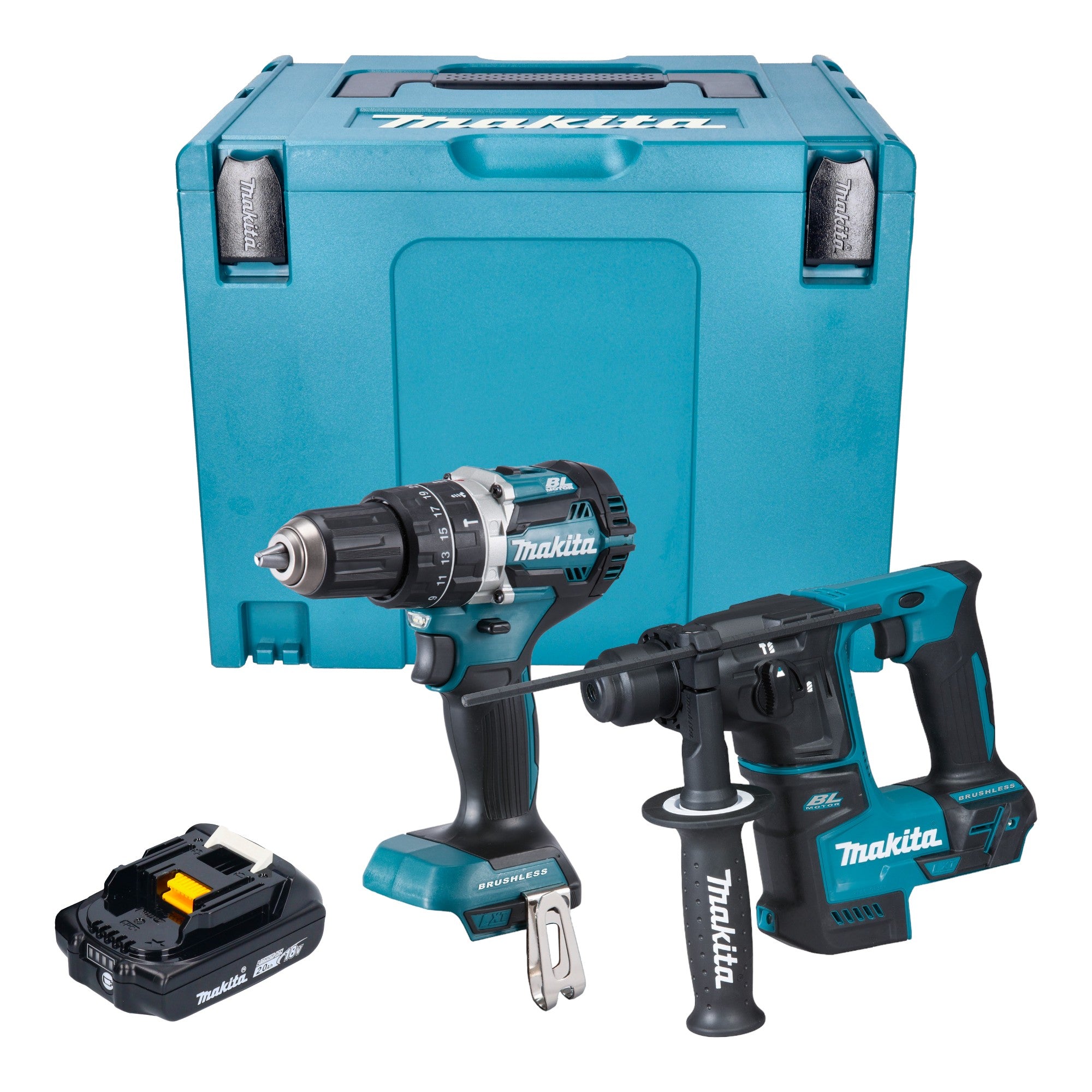 Makita DLX 2278 A1J Akku Kombo Kit + DHP 484 Schlagbohrschrauber 54 Nm + DHR 171 Bohrhammer 1,2 J + 1x Akku 2,0 Ah + Makpac - ohne Ladegerät