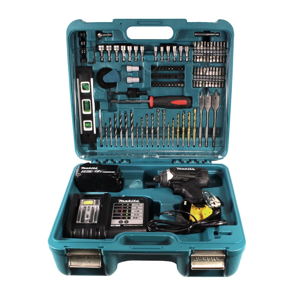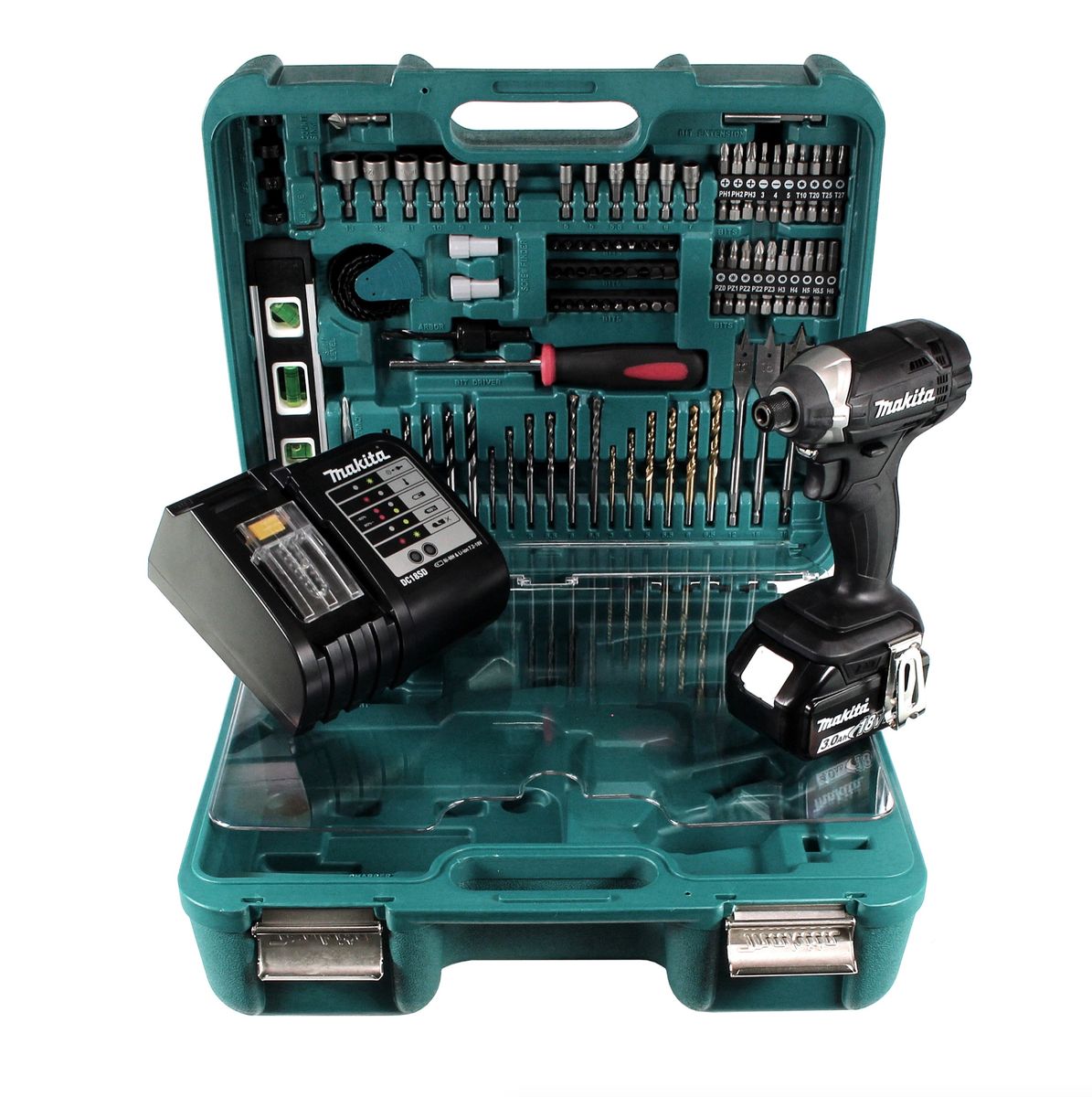 Makita DTD 152 SFTK B Akku Schlagschrauber 18V 165Nm + 1x Akku 3,0Ah + Ladegerät + 101tlg. Werkezugset im Koffer