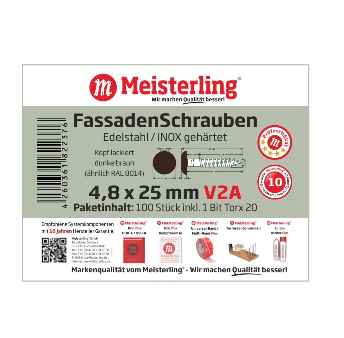 Meisterling Fassadenschrauben 4,8x25 mm 100 Stück ( 010020000031 ) 12 mm Flachkopf dunkelbraun mit Torx Teilgewinde V2A Edelstahl