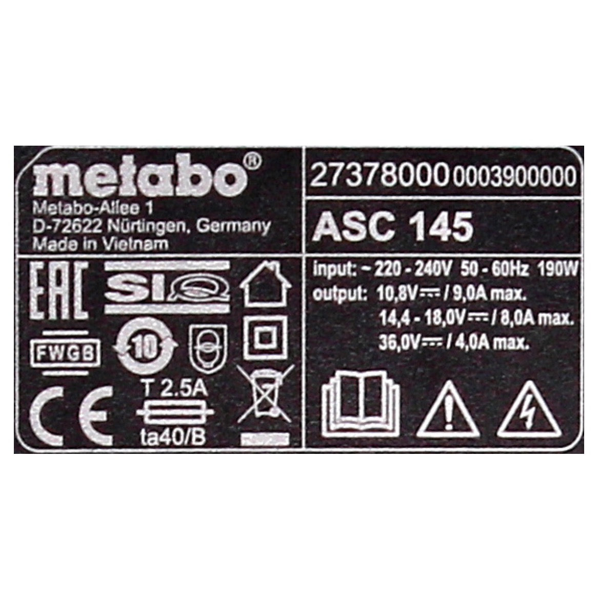 - 1x Metabo Ladegerät ASC 145 ( 627378000 )