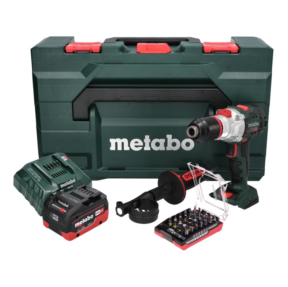 Metabo SB 18 LTX BL I Akku Schlagbohrschrauber 18 V 130 Nm Brushless + 1x Akku 5,5 Ah + Ladegerät + 32 tlg. Bit Set + metaBOX