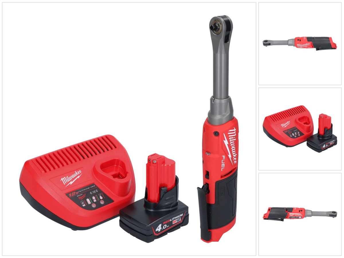 Milwaukee M12 FHIR14LR-401 Akku Hochgeschwindigkeits Ratsche 12 V 47 Nm 1/4" Brushless + 1x Akku 4,0 Ah + Ladegerät