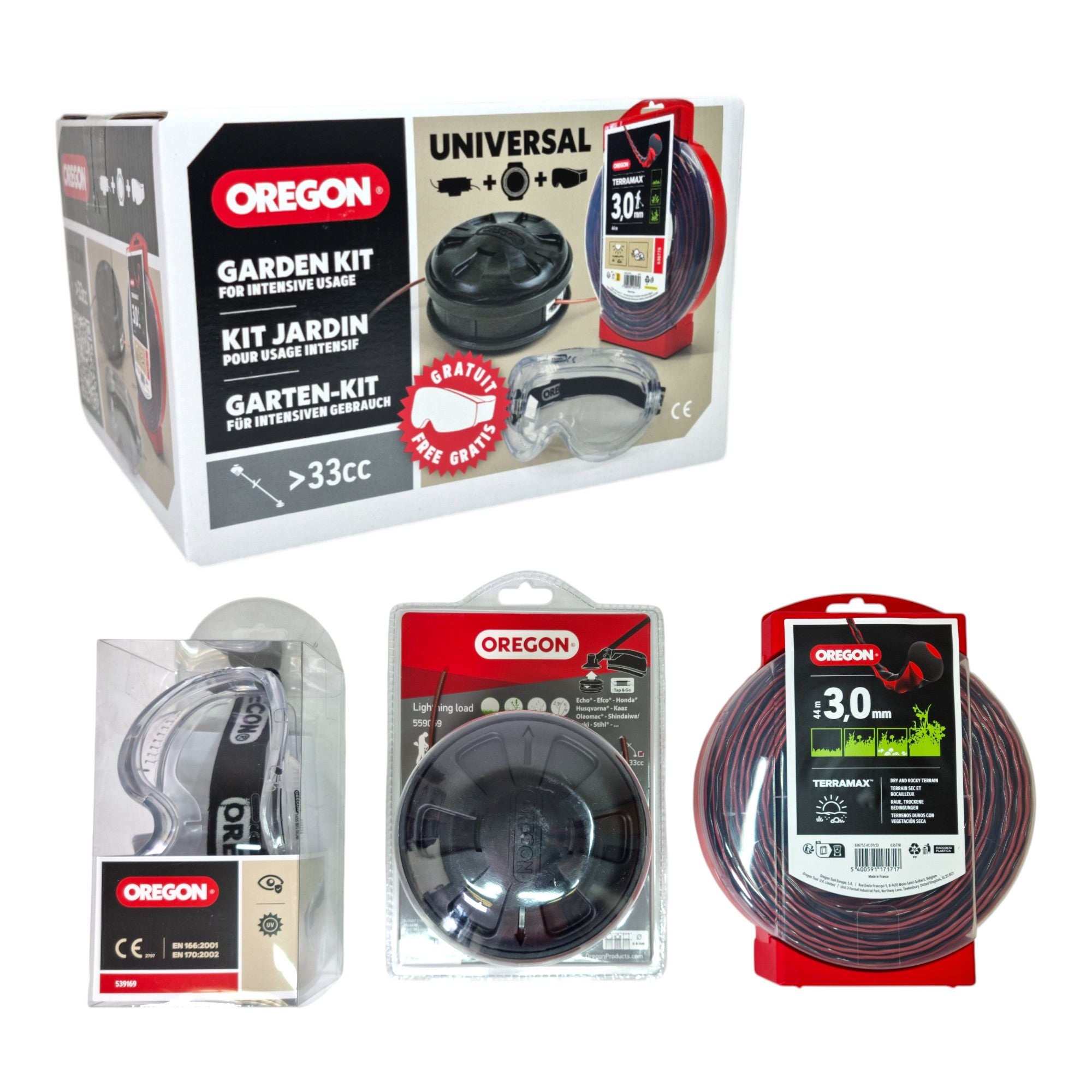 Oregon Pro Garten Set Fadenkopf + Faden + Schutzbrille ( 646569 ) für Freischneider ab 33 cm³
