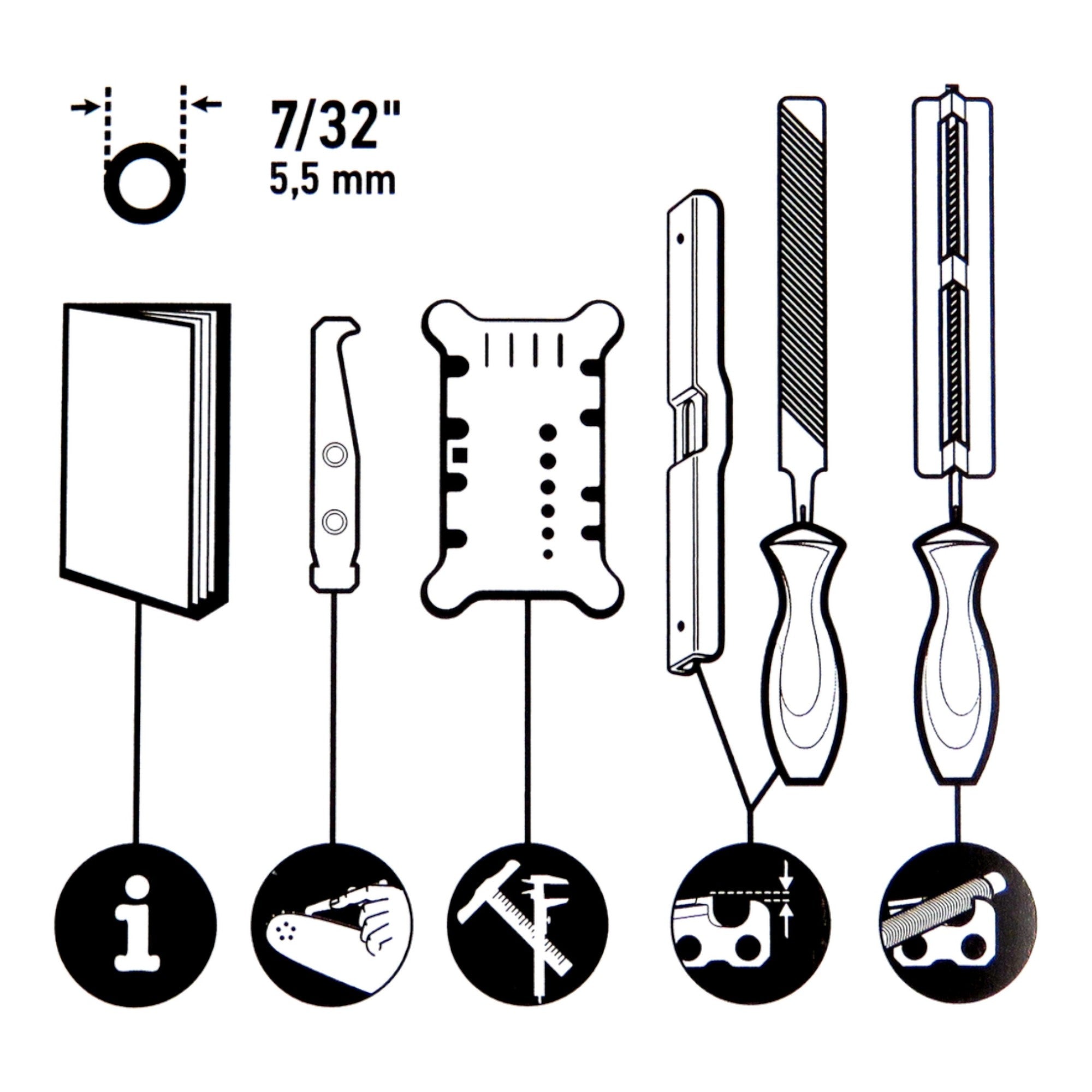 - 1x Oregon Schärfwerkzeug Set 5,5 mm 6 tlg. ( 558551 ) besteht aus: