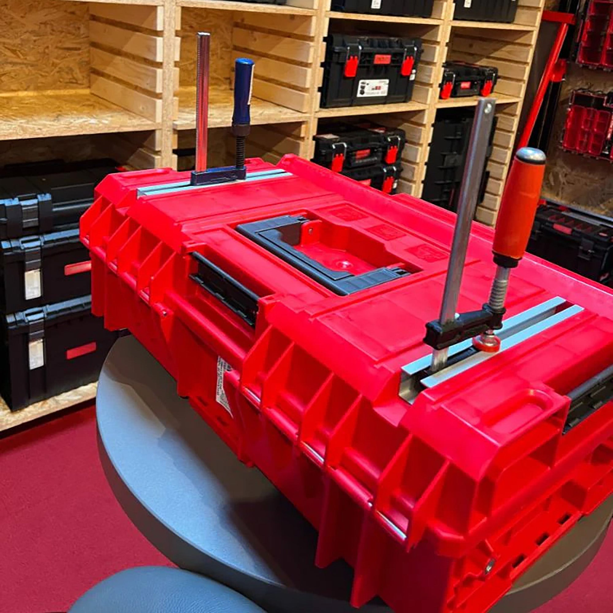ONE 200 ist ein universeller, modularer Werkzeugkoffer, der die Eigenschaften eines Behälters für mittelgroße Werkzeuge mit der Funktion eines Organizers vereint. Mit verstellbaren Trennwänden und 6 herausnehmbaren Eimern kann der Benutzer die optimale Kombination für seine Bedürfnisse zusammenstellen. Jede Box ist mit einer flexiblen Dichtung ausgestattet, die vollen Schutz gegen das Eindringen von Staub und Wasser bietet (IP66). Technik ist die professionellste Version von Qbrick, ausgestattet mit innovativen Aluminium-Montageschienen, die den Einsatz klassischer Zimmermannszwinge ermöglichen. Dank ihnen können die Boxen von Qbrick System Technik als Arbeitstische verwendet werden, die zum präzisen Schneiden, Kleben oder Halten erforderlich sind. Die verstärkte Struktur der Abdeckung und des Körpers garantiert eine hohe Tragfähigkeit (50 kg) und hält einem Druck von bis zu 120 kg stand, wodurch komfortable Arbeitsplattformen geschaffen werden können. Der Koffer wird mit QS PRO Connect Adaptern geliefert, die es ermöglichen, den Koffer mit den Modulen der PRO-Linie (Toolbox, Schublade, Technikerkoffer, Werkzeugkoffer, Box 130, Organizer 100, 200 und 300) zu verbinden, nachdem diese anstelle der Montageschienen montiert wurden. RED ULTRA HD ist eine Sonderedition von Qbrick System ONE-Produkten aus ultrabeständigem Kunststoff, der sich durch außergewöhnliche Beständigkeit gegen mechanische Beschädigungen auszeichnet. Die durchgeführten Schlagtests bestätigen seine außergewöhnliche Haltbarkeit, auch bei Bedingungen unter 0 °C. Version 2.0 Custom ist eine neue Generation von Werkzeugkästen und Organizern mit verstärktem Design. Die M8-Gewindeeinsätze in den Gehäusen ermöglichen die Anpassung des Systems an die Bedürfnisse des Benutzers. #letscustomize