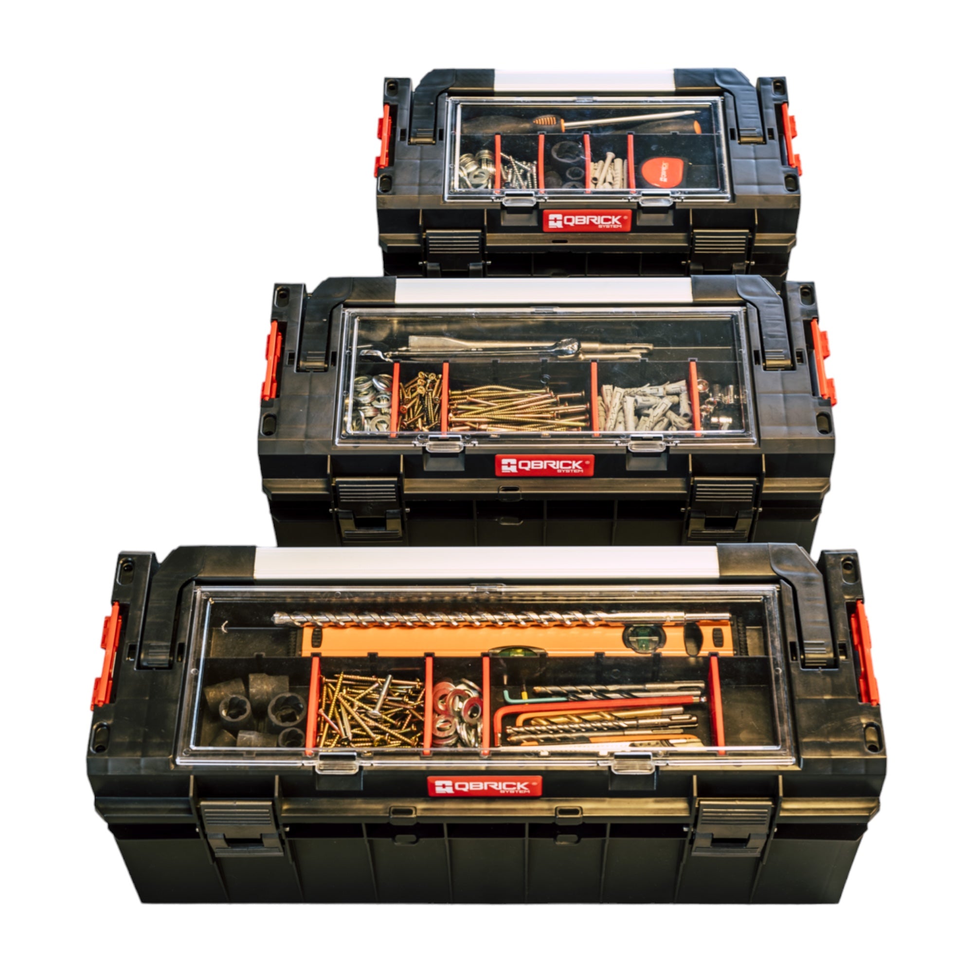 PRO 500 ist der kleinste Vertreter einer neuen Generation professioneller Werkzeugkoffer. Die PRO-Linie zeichnet sich durch die in dieser Klasse einzigartige Funktion aus, zwei Boxen mit Polyamidverbindern und einer flexiblen Dichtung miteinander zu verbinden, die einen vollständigen Schutz gegen das Eindringen von Wasser und Staub gewährleistet. Der Expert Organizer, der sich im Deckel der Box befindet, ermöglicht Ihnen dank verstellbarer Trennwände, sowohl kleines als auch langes Werkstattzubehör zu organisieren. Ein solider Aluminiumgriff, Polyamid-Verschlüsse und Seitenverbinder sowie ein Polycarbonat-Schieber des Organizers sind Garanten für einen langjährigen störungsfreien Betrieb.