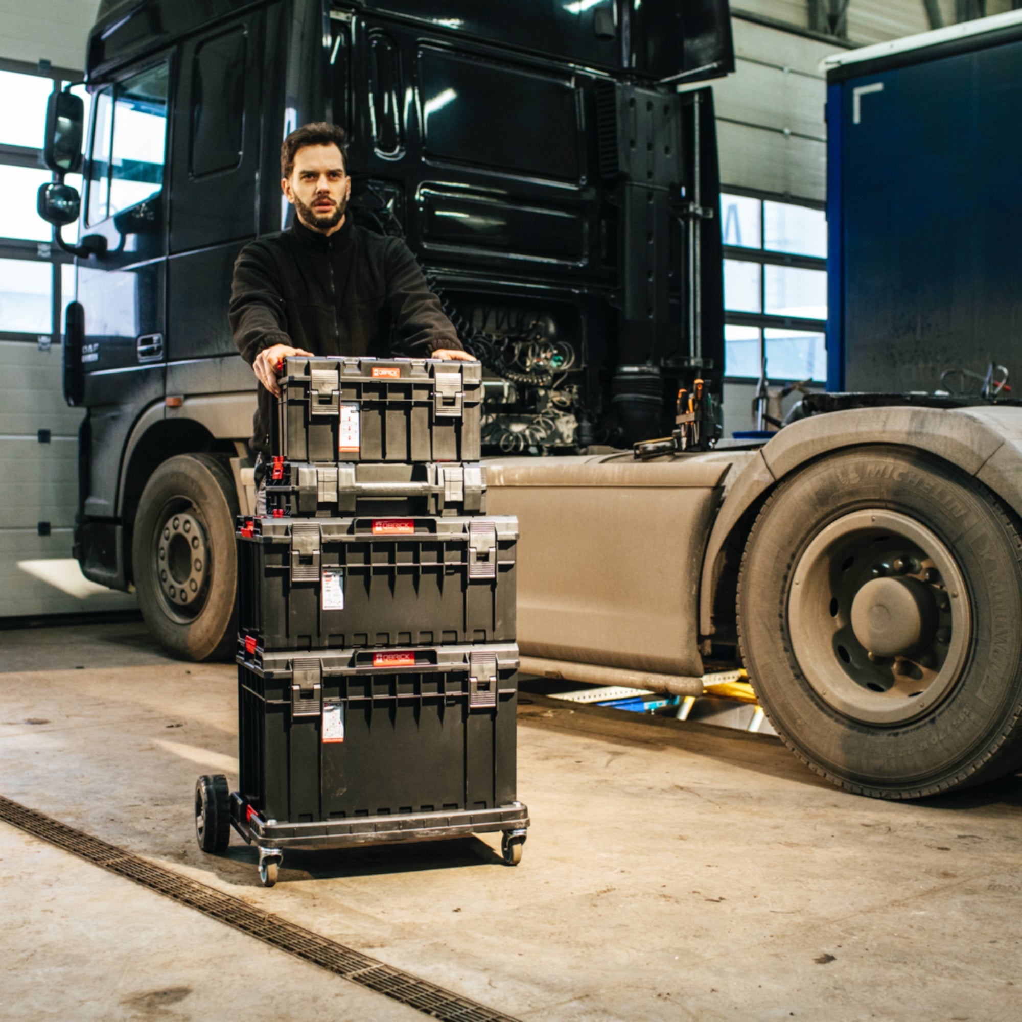 Der PRO 600 ist ein Werkzeugkasten mit der optimalen Größe, perfekt für Profis sowie für Heimwerker. Der Profi-Deckel mit drei Organizern ermöglicht Ihnen die einfache Organisation von kleinem Werkstattzubehör. Vollständige Wasserdichtigkeit, Polyamidverbinder zum Verbinden der Boxen untereinander, starke Struktur, solider Aluminiumgriff, großer Organizer im Deckel mit transparentem Polycarbonatglas sind die wichtigsten Vorteile dieses Modells.