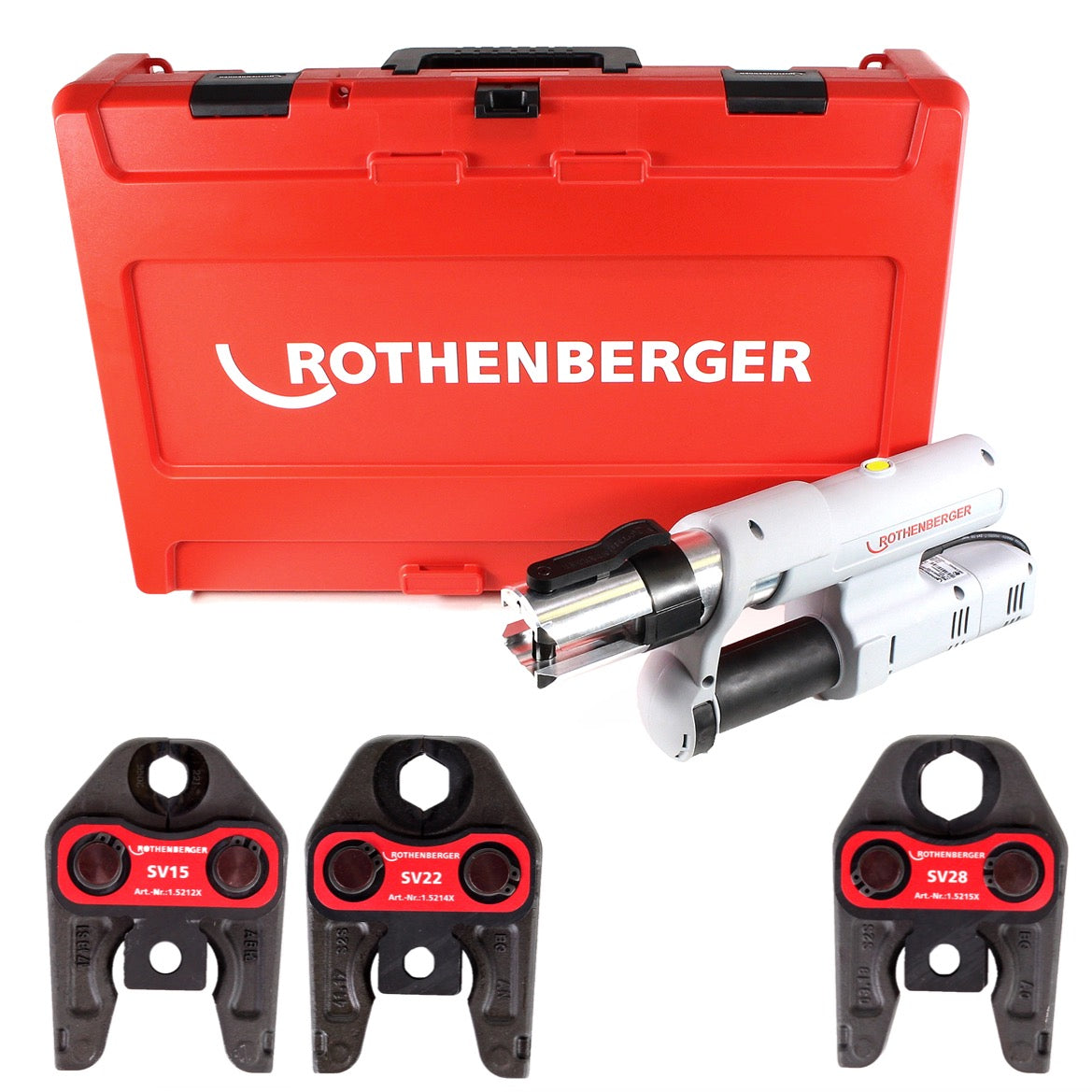 Rothenberger ROMAX AC ECO Set SV 230 V Pressmaschine für Netzbetrieb im Transportkoffer + 3 x Pressbacken ( 15740 )