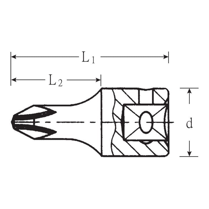6,3 mm (1/4 ”)-Vierkantantrieb · für Schrauben mit Kreuzschlitz (PH) · Chrom-Alloy-Stahl · verchromt · DIN 3120 / ISO 1174-1 / DIN 5260
