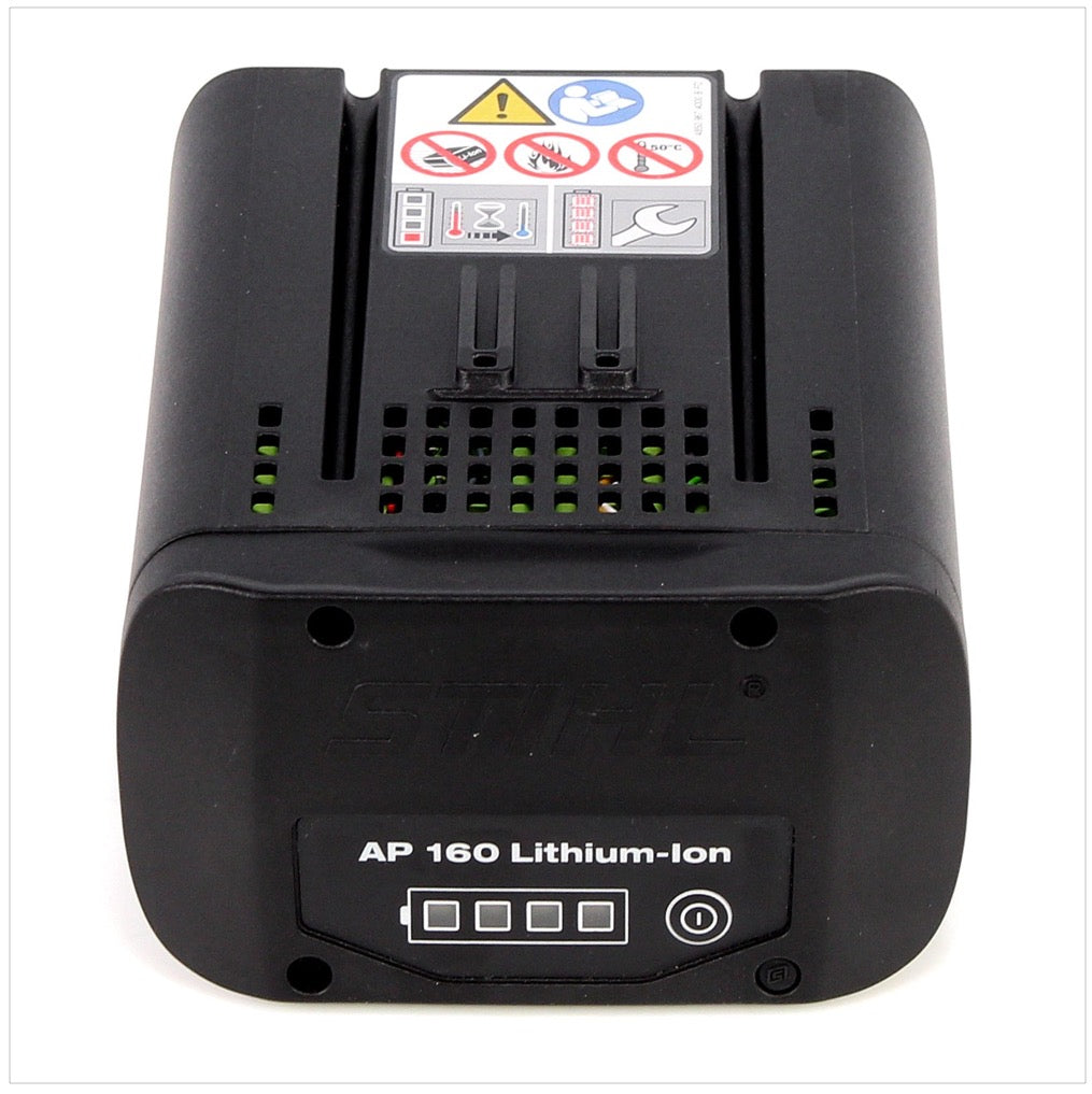 Der Stihl AP 160 Akku besitzt eine Akkukapazität von 4,5 Ah. Er eignet sich für alle 36 V Geräte aus dem Hause Stihl und ist mit den Ladegeräten AL 100, AL 300 und AL 500 ladbar. Außerdem besitzt der Akku eine vierstufige LED Ladezustandsanzeige.