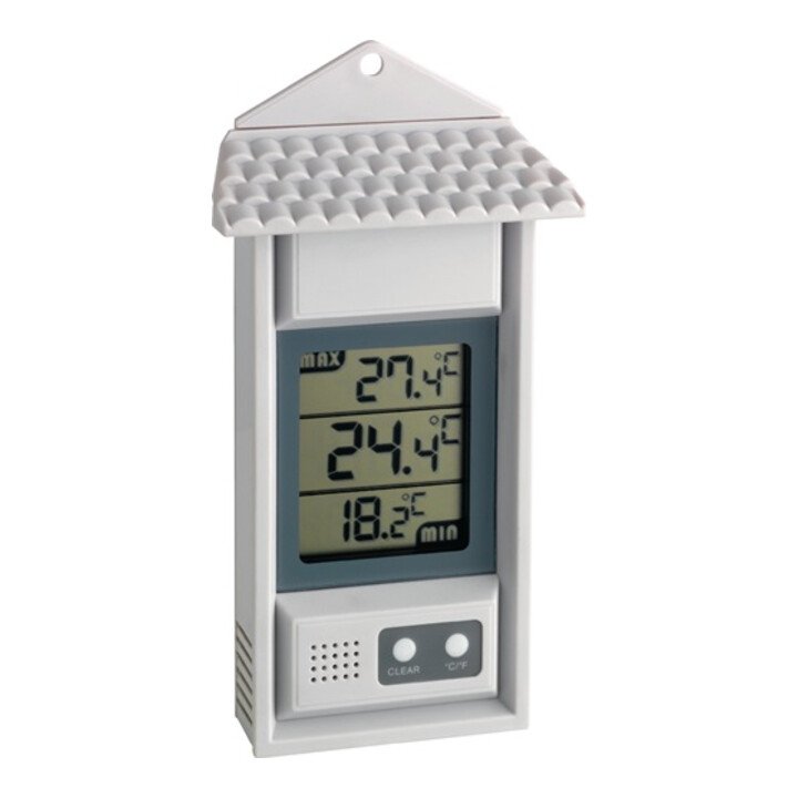 für innen und außen · wetterfest · Max./Min.-Funktion · Messbereich -20 °C bis +70 °C · umschaltbar C/F · zum Hängen · inkl. Batterie 1,5 V AAA