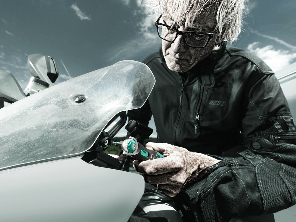 mit Kombiwerkzeugaufnahme · geeignet für Steckschlüssel-Einsätze 10,0 mm (3/8")-Vierkantantrieb und Bits mit 6,3 mm (1/4 ")-Sechskantantrieb (C 6,3 und E 6,3) mehrkomponentiger Kraftform-Griff - im Griff · integriertes, unverlierbares, freischwenkbares Magazin mit 12 Bits · frei schwenkbarer Knarrenkopf (definierte Stellung bei 0°, 15° und 90° nach links und rechts) · in 0°-Stellung einsetzbar wie ein konventioneller Schraubendreher · Links-/Rechtsumschaltung · magnetische Direktaufnahme Inhalt: 1 kompakte Zyklop Knarre mit integriertem Bit-Magazin je 1 Bit mit BiTorsion-Zone für Schrauben mit Kreuzschlitz (PH) Gr. 1 / 2 je 1 Bit mit BiTorsion-Zone für Schrauben mit Kreuzschlitz (PZD) Gr. 1 / 2 je 1 Bit mit BiTorsion-Zone für Schrauben mit Innen-TORX®-Profil Gr. T 10 / 15 / 20 / 25 je 1 Bit mit BiTorsion-Zone für Schrauben mit Innensechskant-Profil Gr. 3 / 4 / 5 / 6 mm