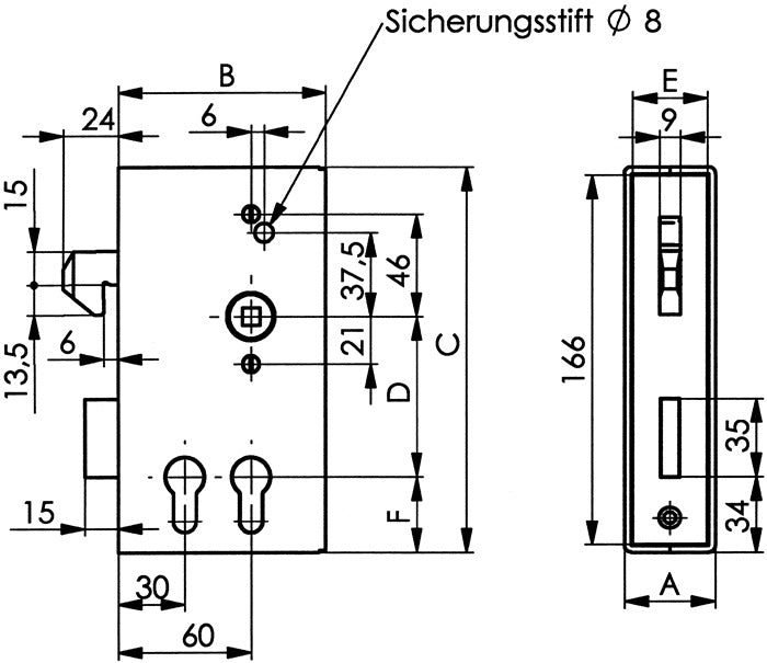 AMF sliding door lock case 140SD-40ZW DIN left / right ( 3000251259 )