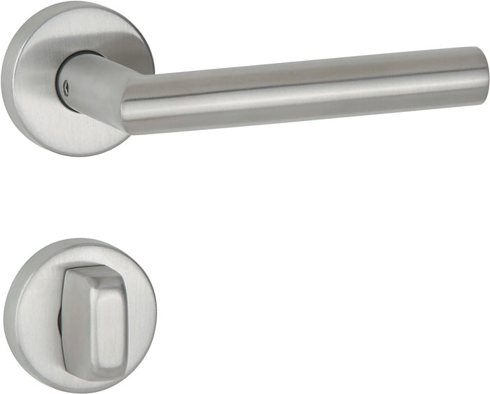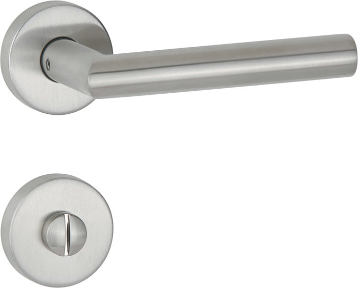 Matt stainless steel - 8 mm square spindle - tested to EN 1906 class 3 - suitable for DIN left / right - lever handle loosely mounted in plastic substructure - easy-to-install rosette system thanks to intelligent pre-assembly of clip rosettes and lever handle pins - double-sided hold-open spring, can be used on the right and left - separate installation of rosettes and lever handle pairs - suitable for door thickness 38-45 mm