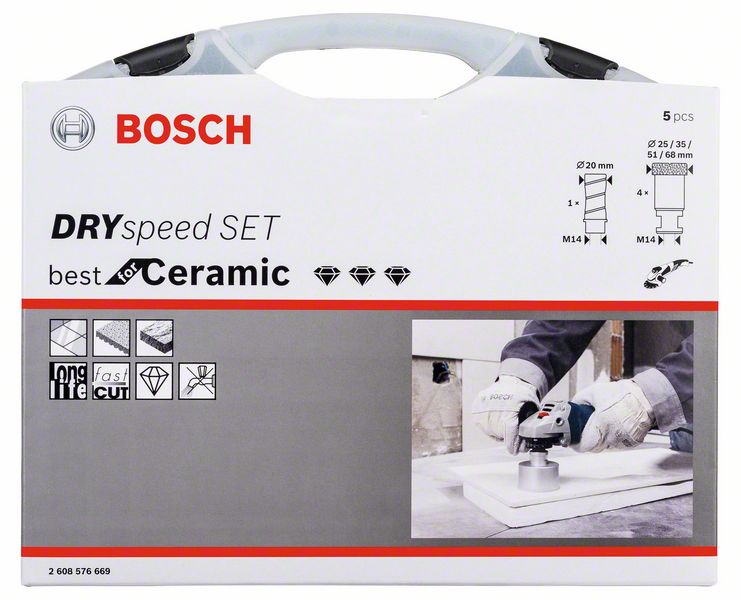 Bosch Diamond Cutter Dry speed-set ( 5 pcs. ) / Diamond Milling Cutter 20-68 mm best for Ceramic / Angle Grinder, 5 pieces ( 2608576669 )