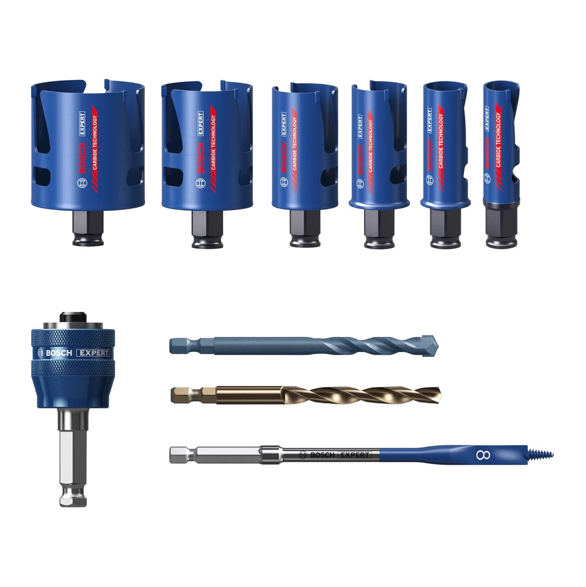 Bosch Expert Construction Material Lochsägen Set 10 tlg. 20 / 25 / 32 / 38 / 51 / 64 x 60 mm ( 2608900490 ) Carbide Technology für Dreh- und Schlagbohrer