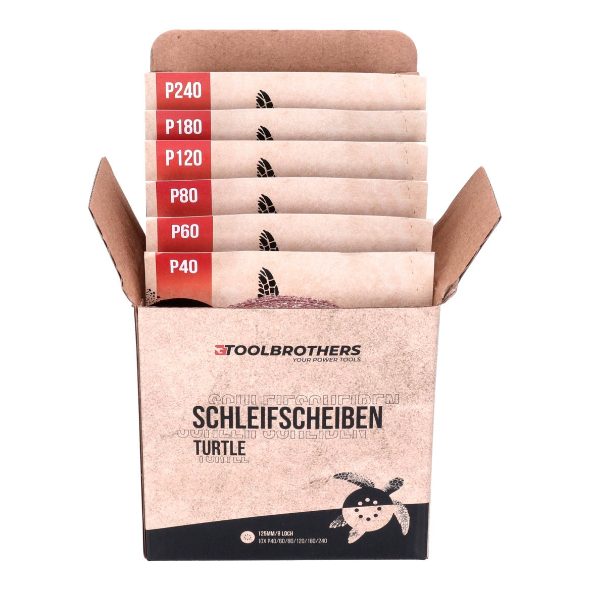 Bosch GEX 12V-125 Professional cordless random orbital sander 12 V 125 mm brushless + 2x rechargeable battery 3.0 Ah + charger + Toolbrothers TURTLE sanding set + L-Boxx