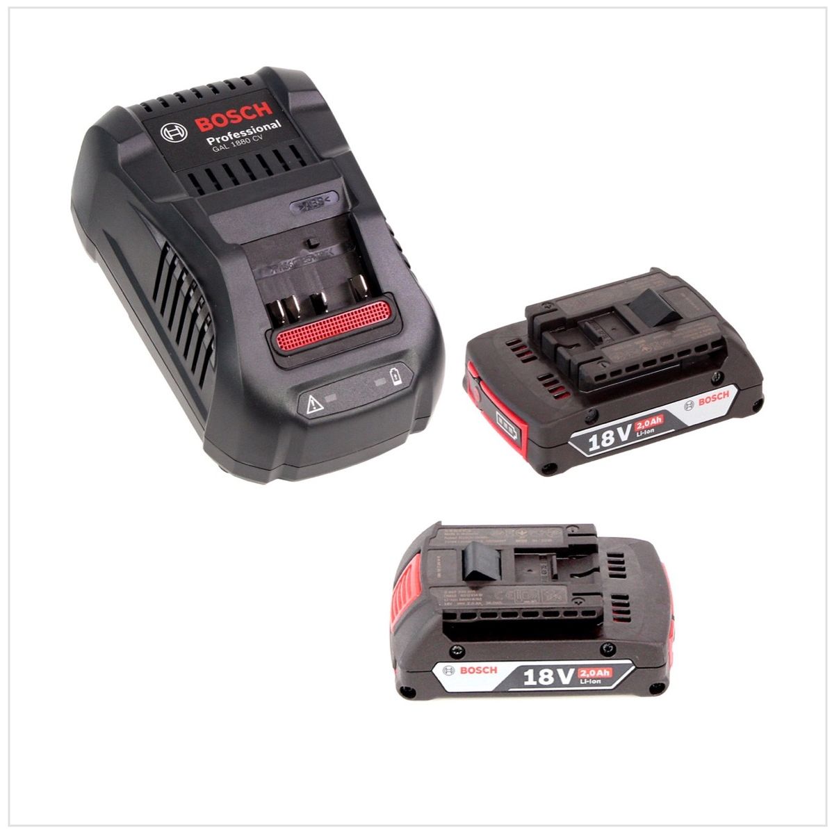 - 2x Bosch GBA 18V 2.0 Ah battery